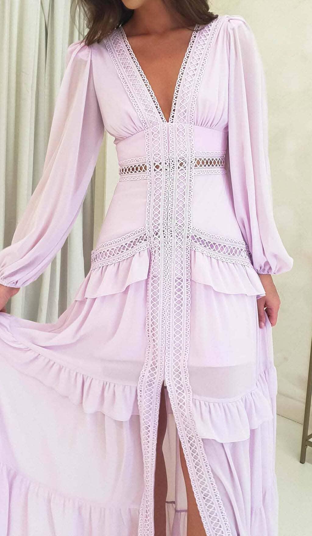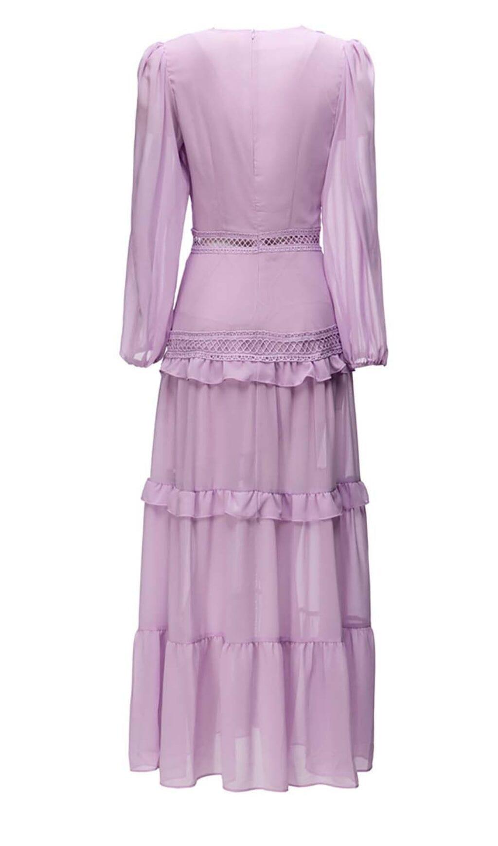LONG SLEEVE RUFFLE MAXI DRESS IN LILAC