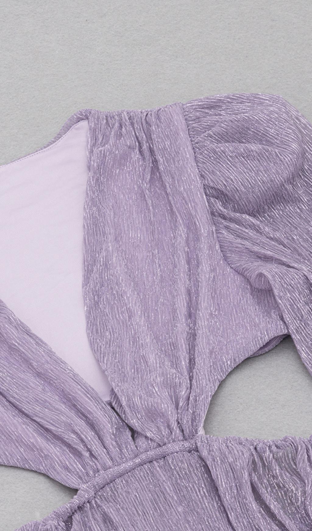 LONG SLEEVE V NECK MAXI DRESS IN PURPLE
