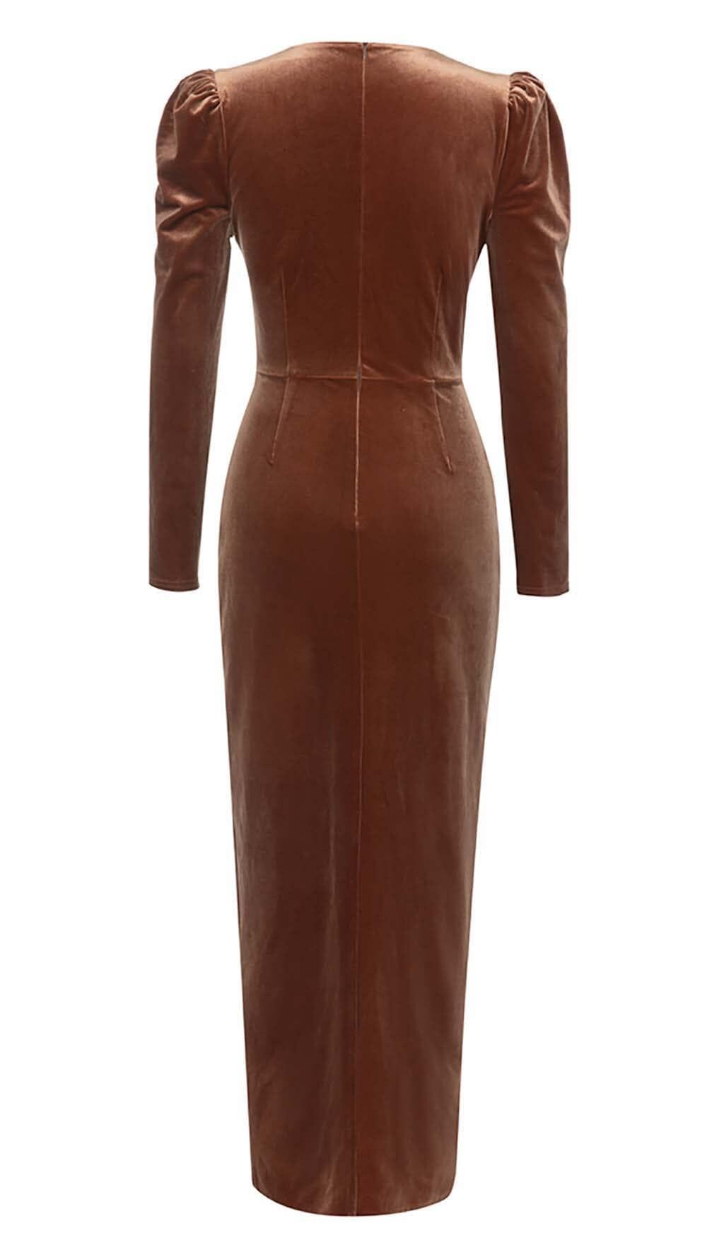 LONG SLEEVE VELVET MIDI DRESS IN BROWN