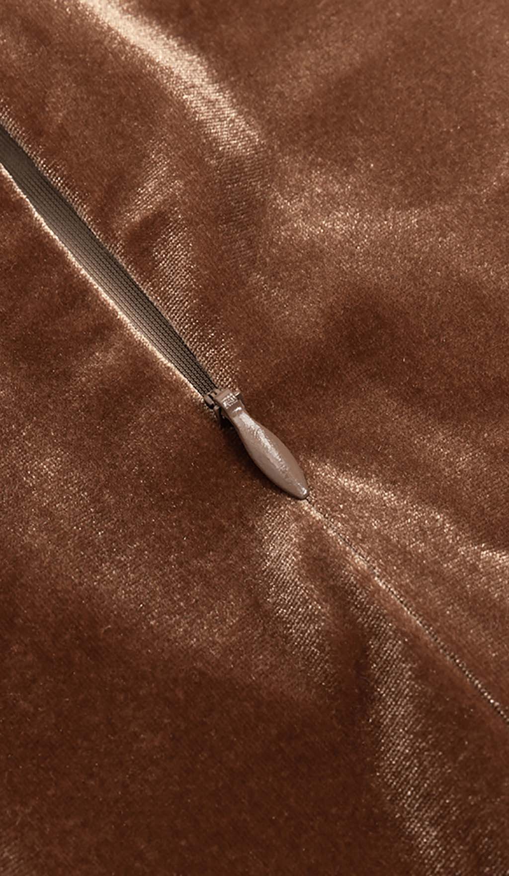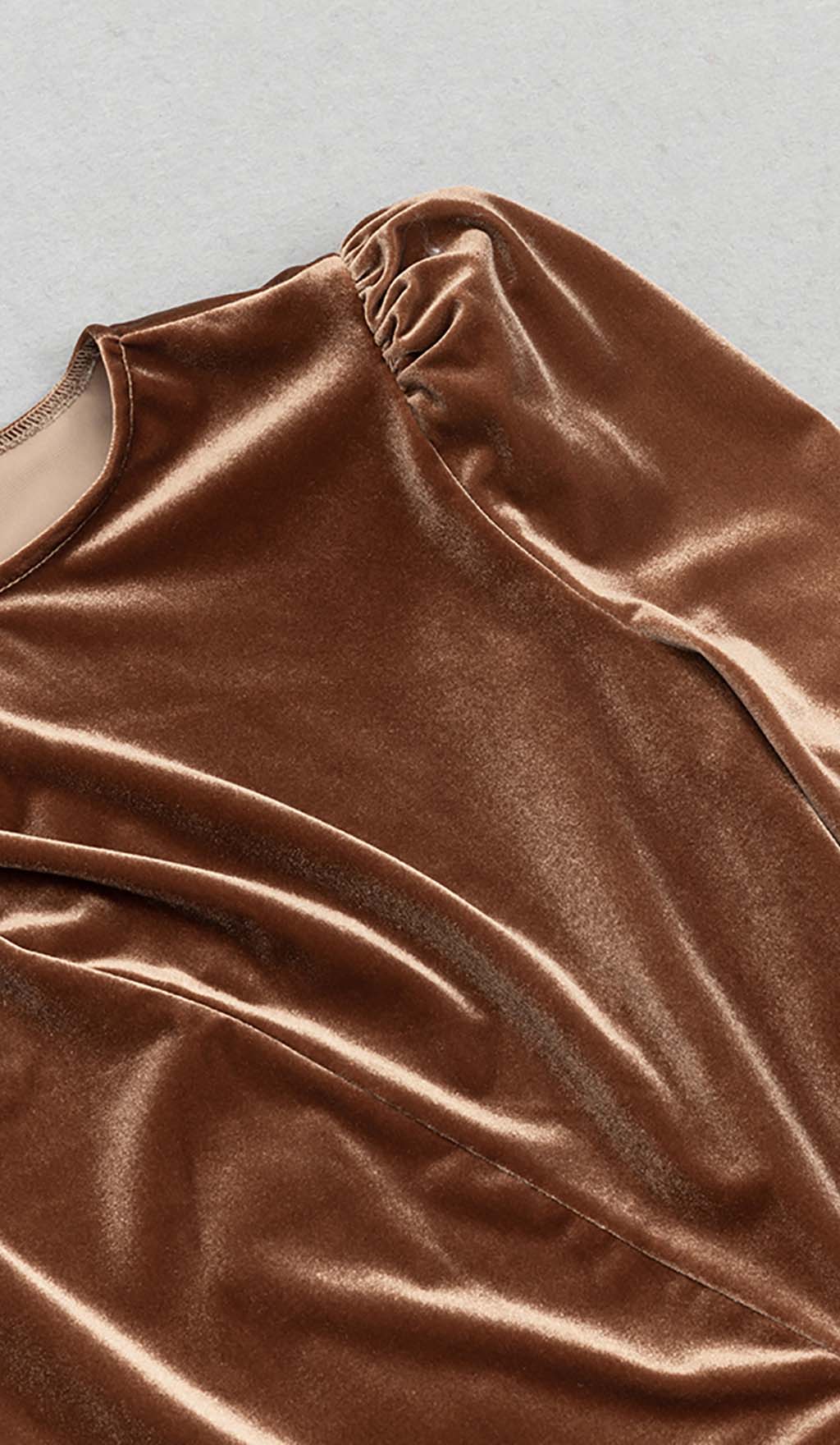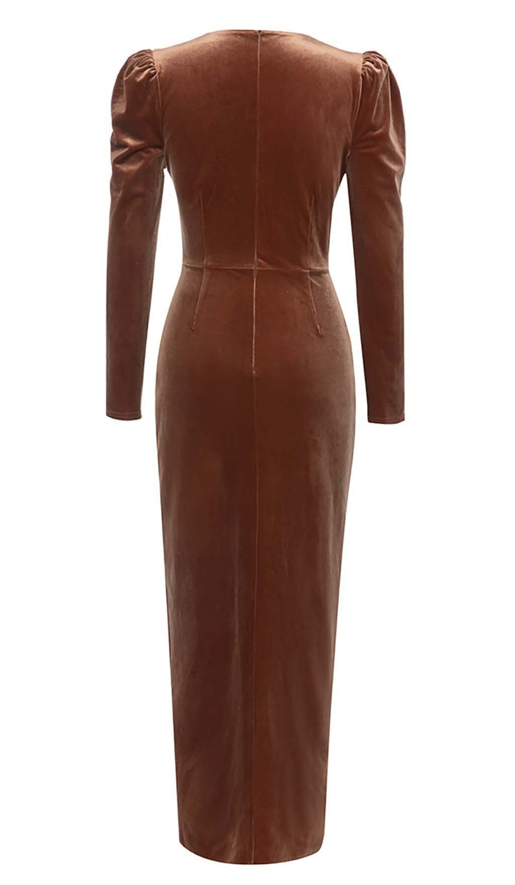 LONG SLEEVE VELVET MAXI DRESS IN BROWN