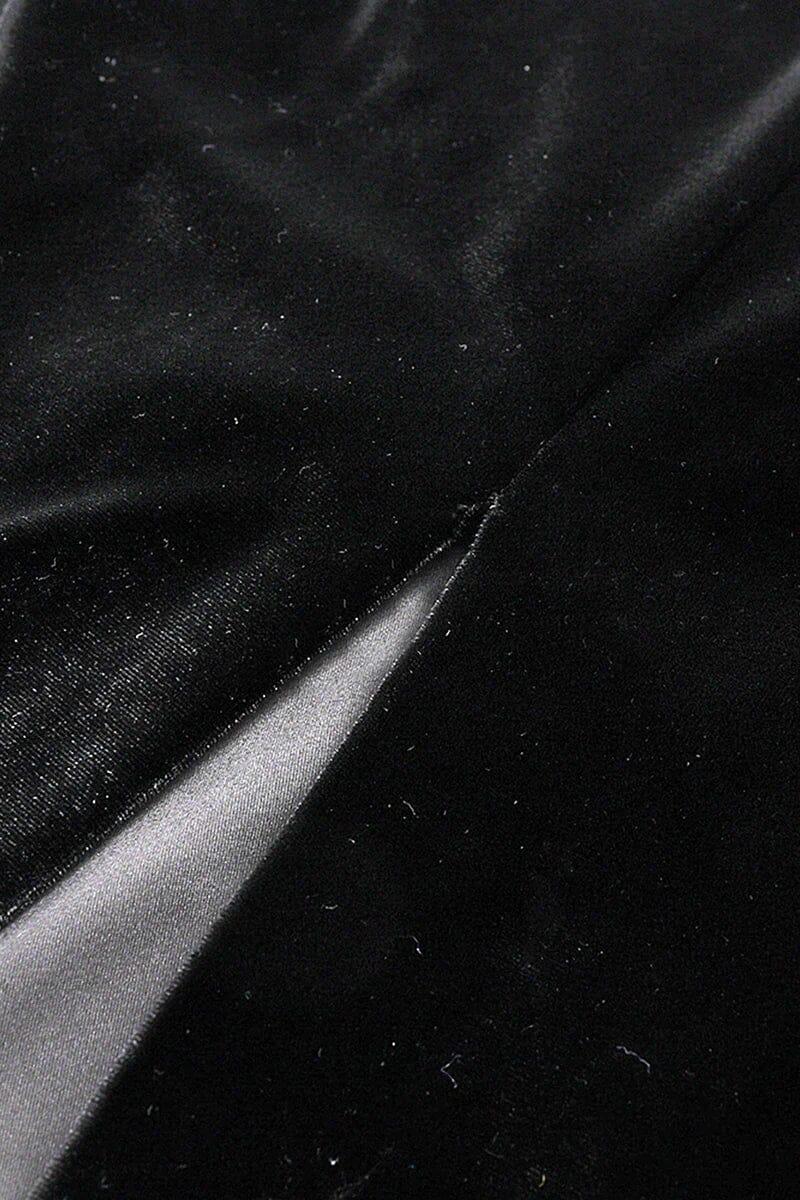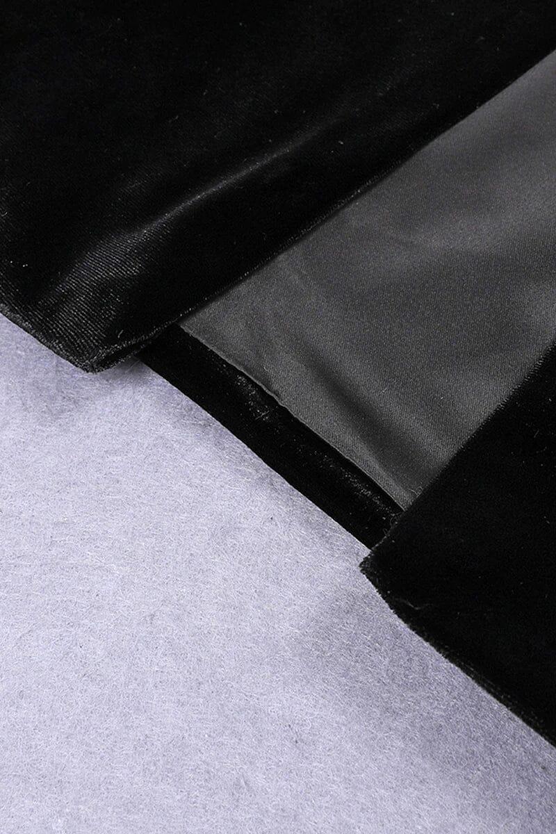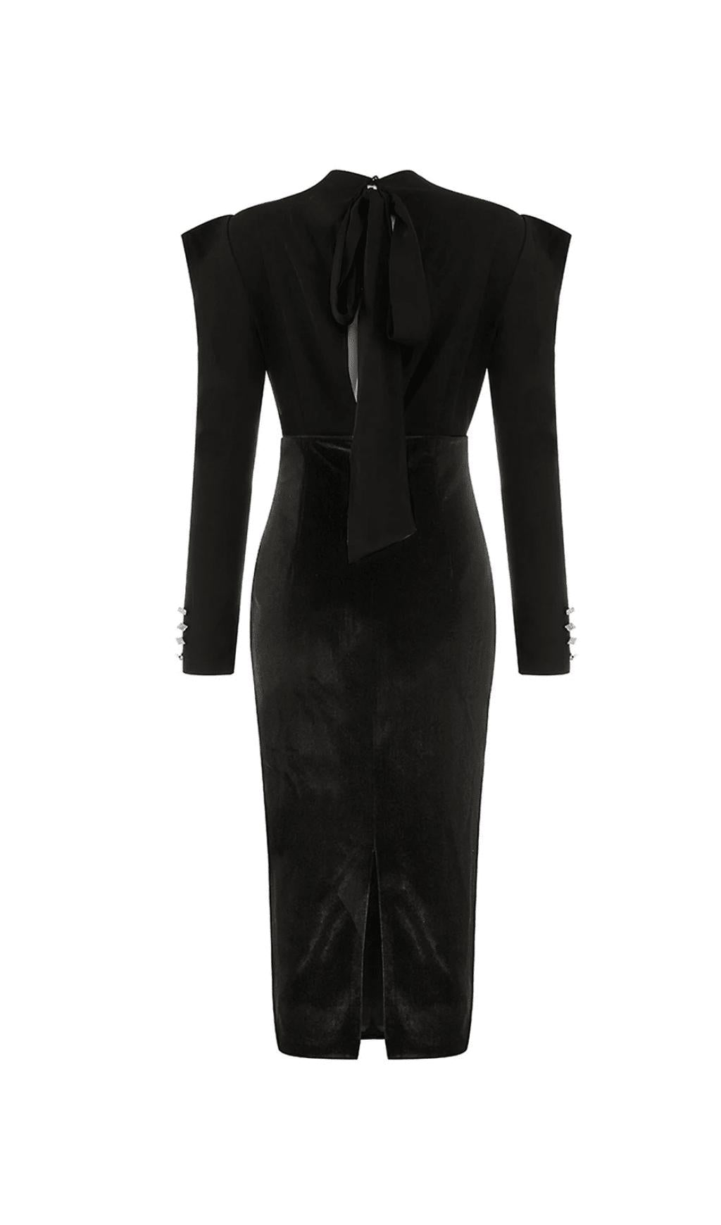 LONG-SLEEVED BACKLESS BOW MESH VELVET PATCHWORK MIDI DRESS