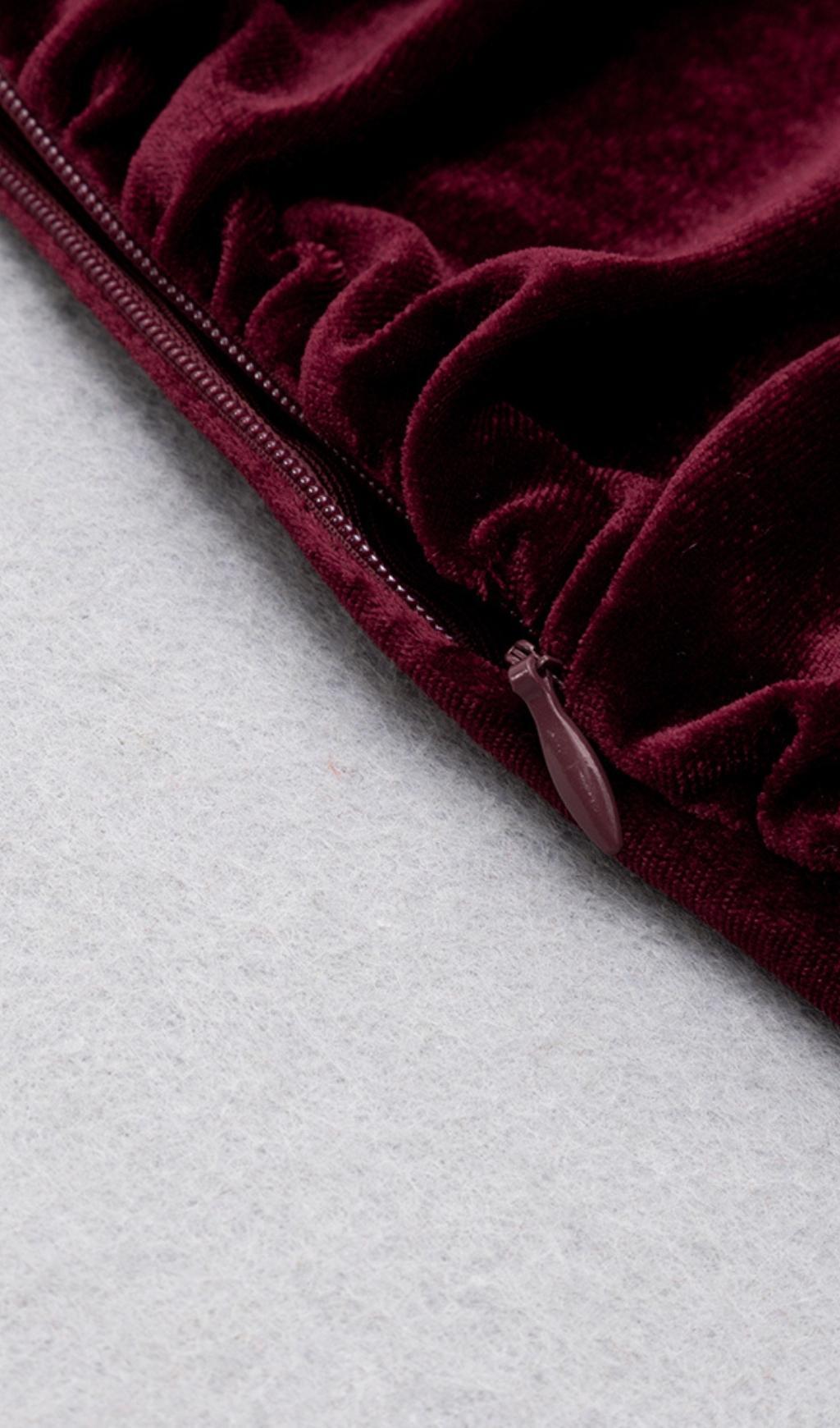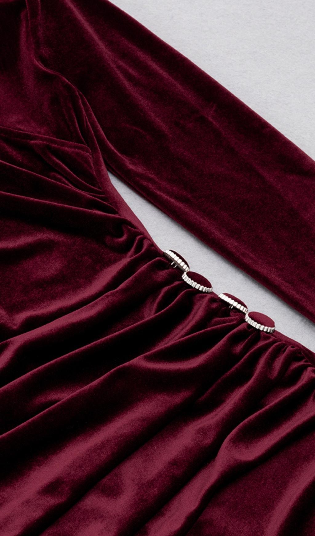 LONG SLEEVES RUCHED MIDI DRESS IN RED