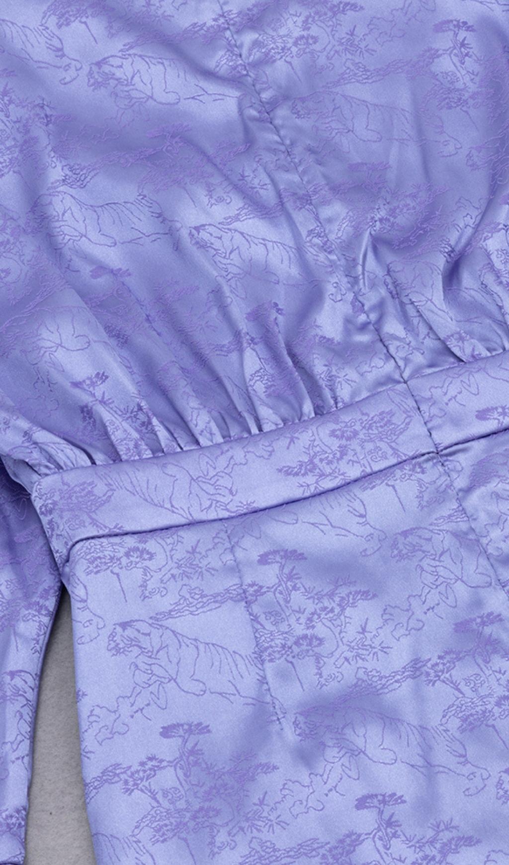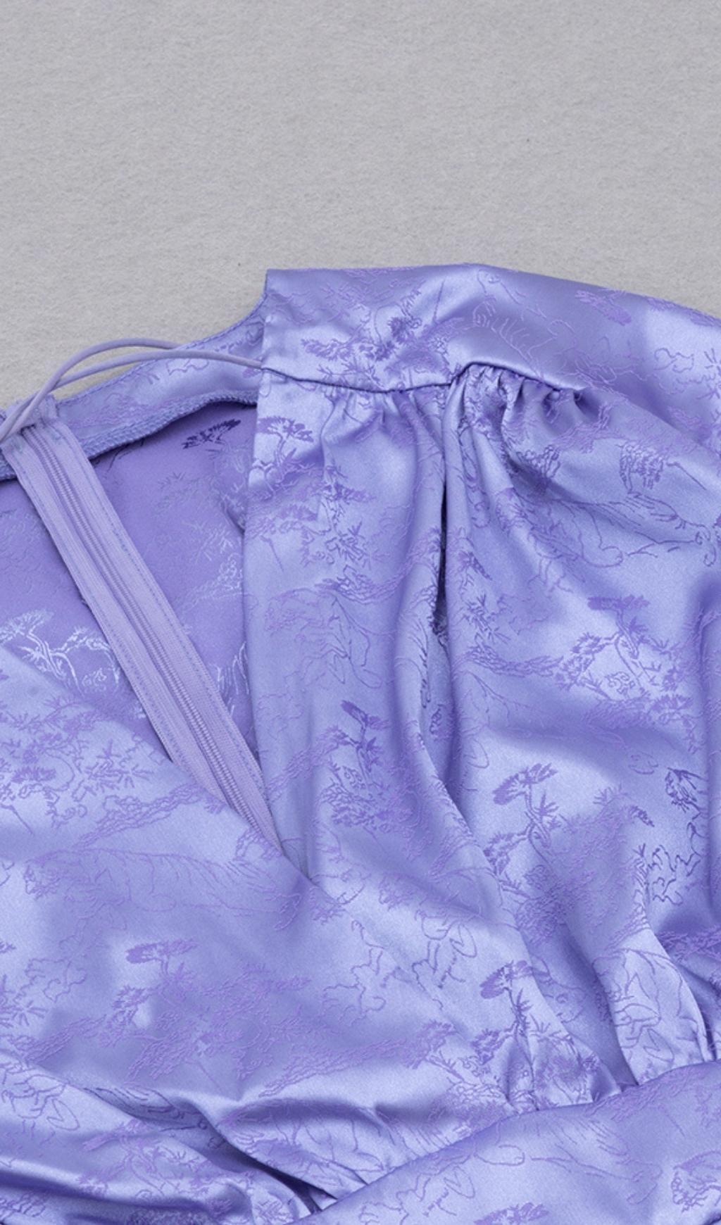 LONG SLEEVES RUCHED MINI DRESS IN PURPLE