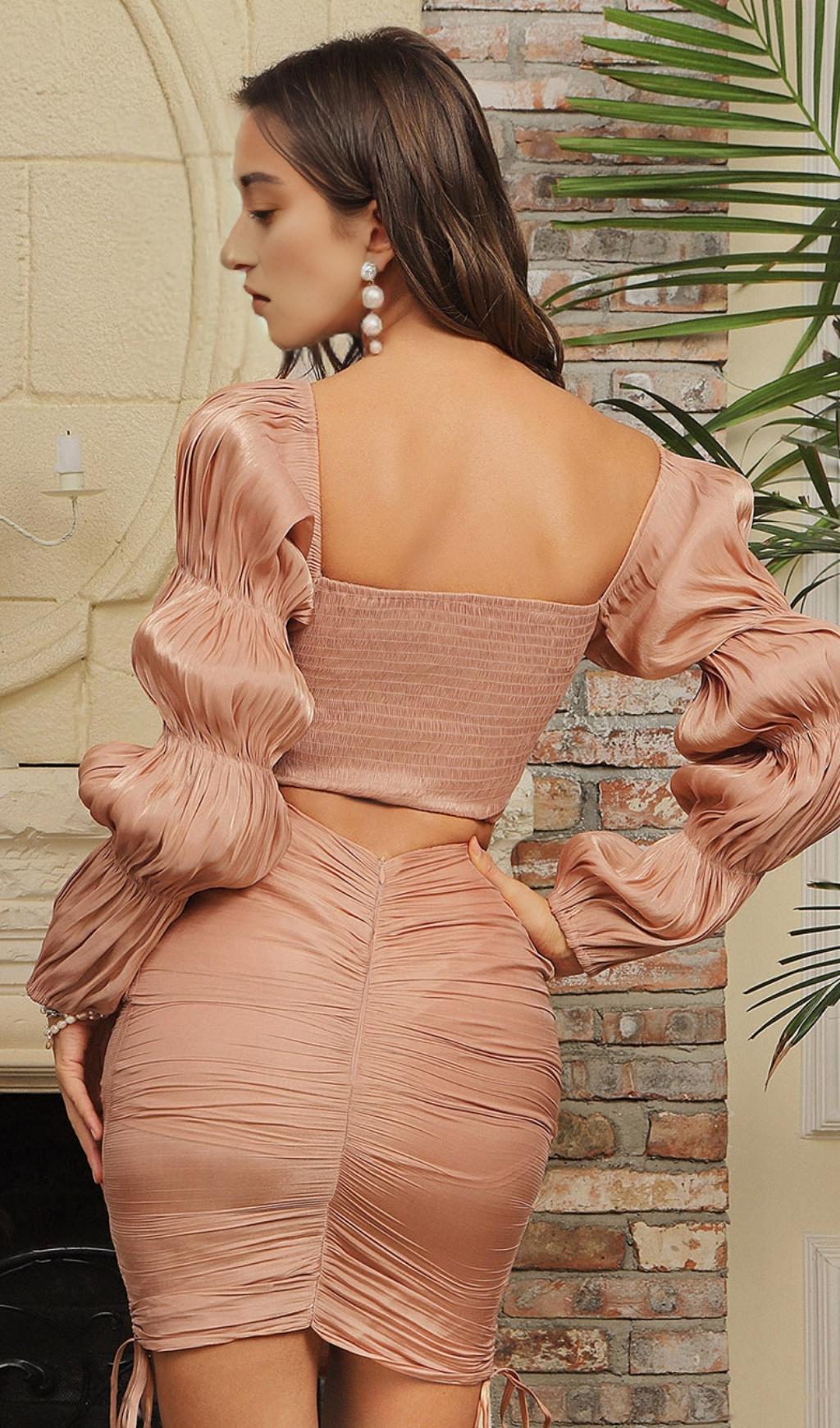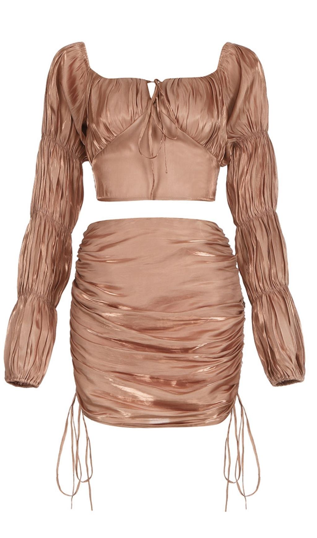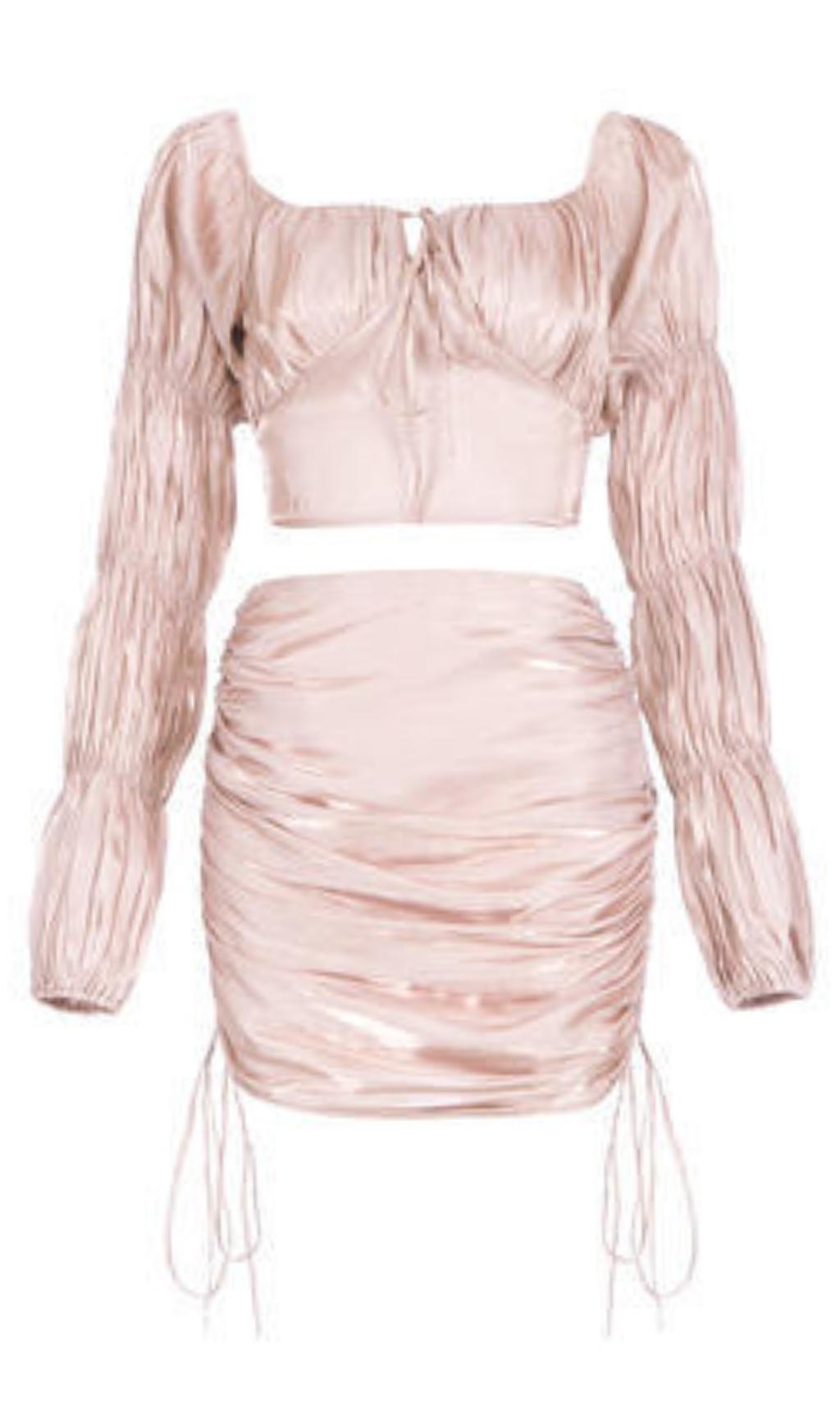 LONG SLEEVES RUCHED TWO PIECE SET