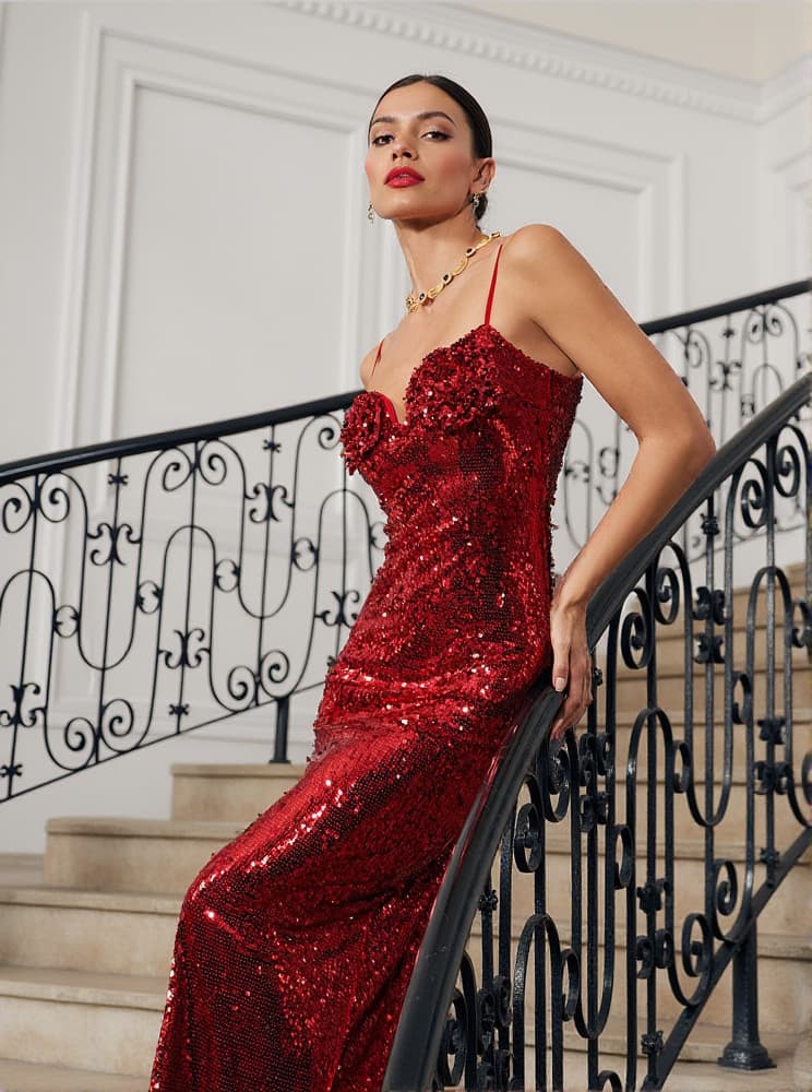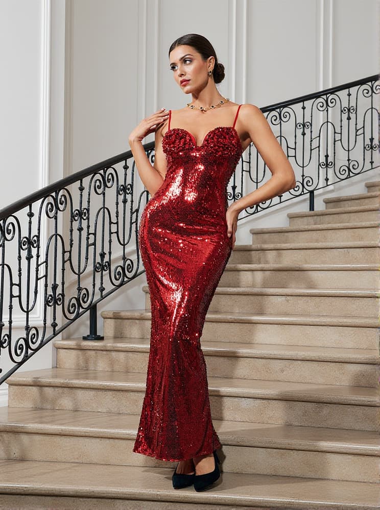 Lorelei Red Flower Sequin Dress