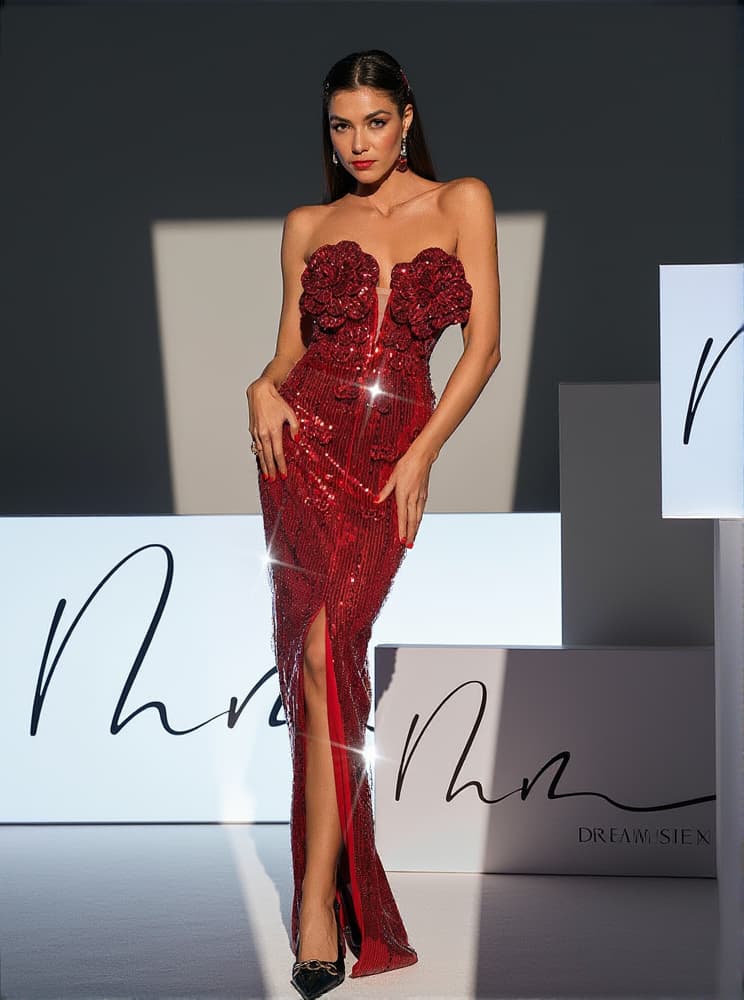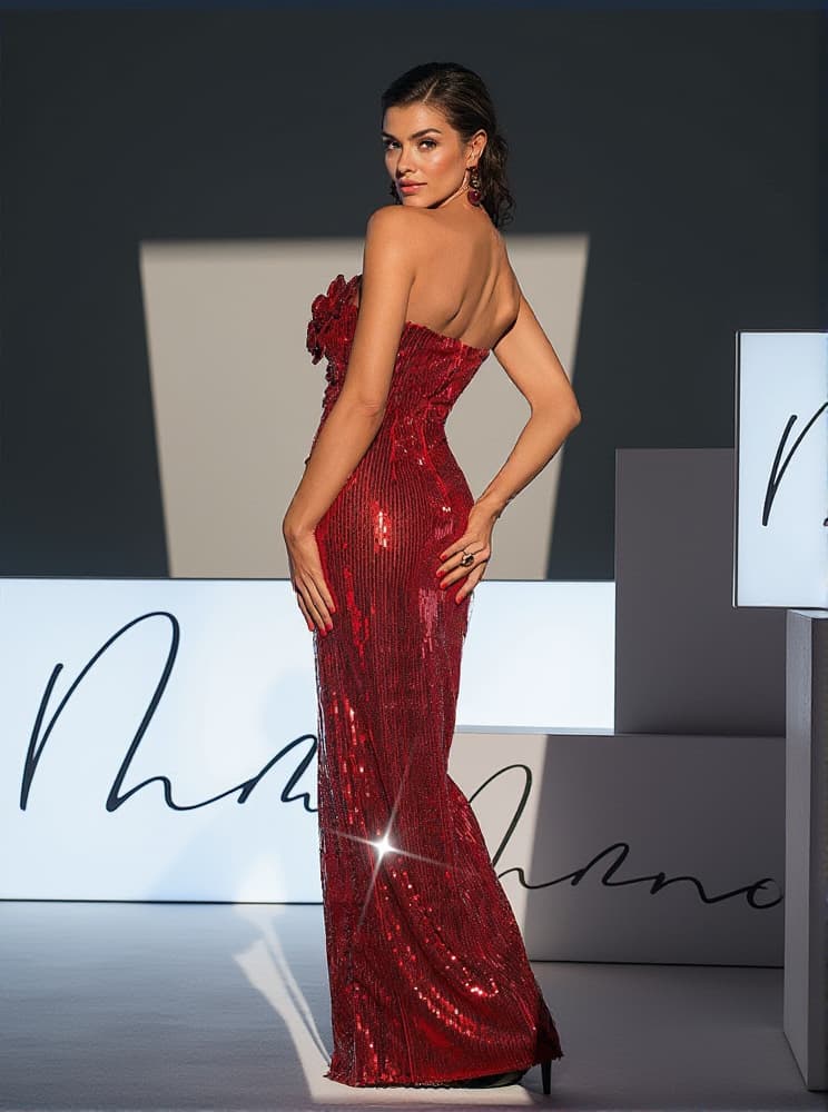 Effortlessly stand out in our Lorelei Strapless Flower Sequin Split Dress. The stunning wine color and intricate flower sequin design will make you the center of attention. The strapless style and split detail add a touch of elegance to this dress. Perfect for a special occasion or a night out on the town.