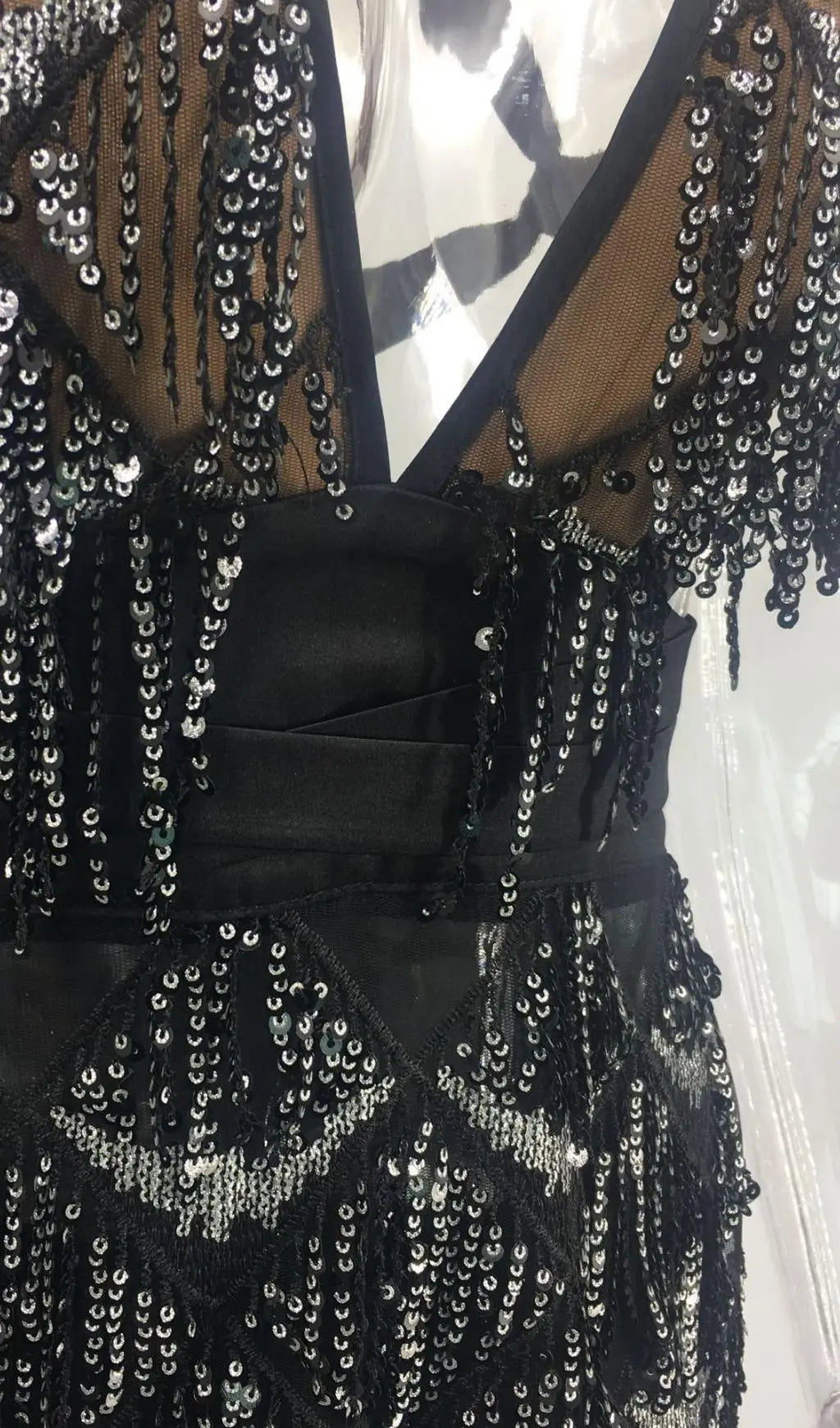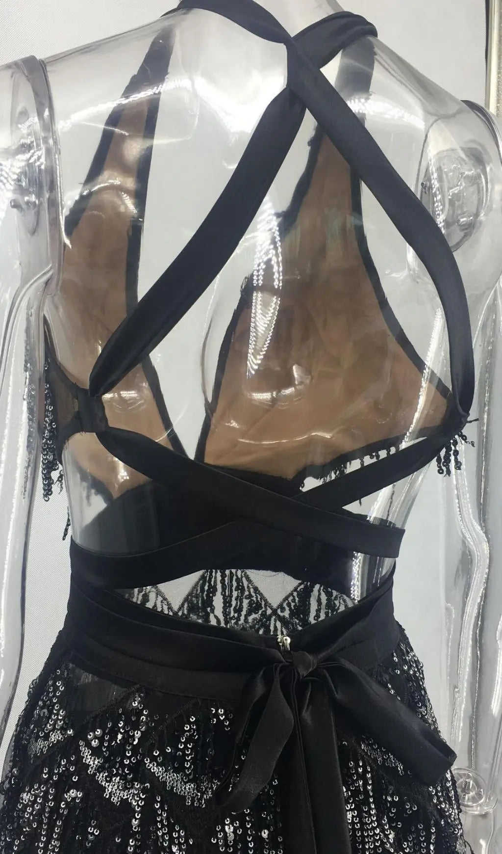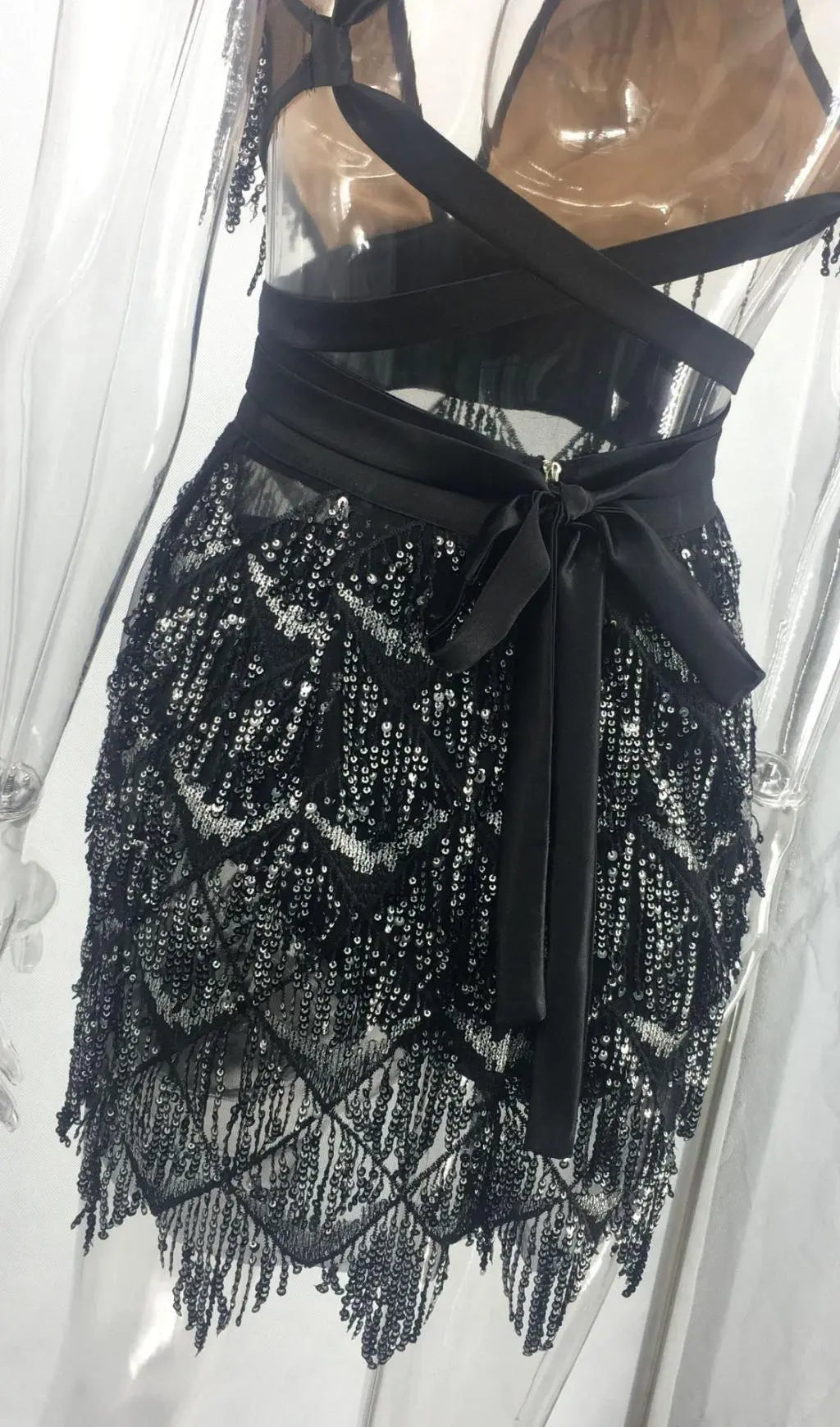 BLACK SEQUIN BACKLESS MINI DRESS