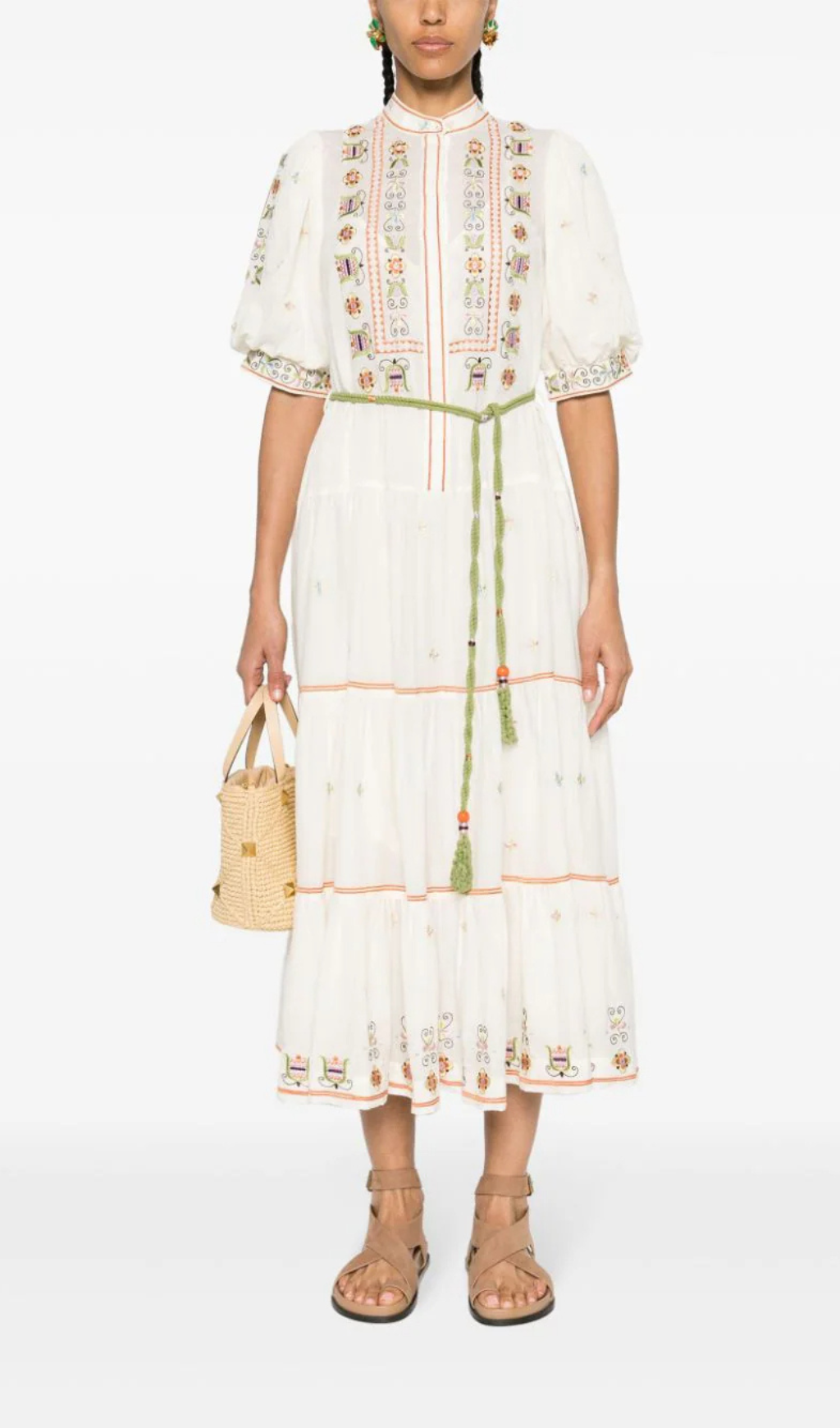 LOVELLA FLORAL-EMBROIDERED MIDI DRESS