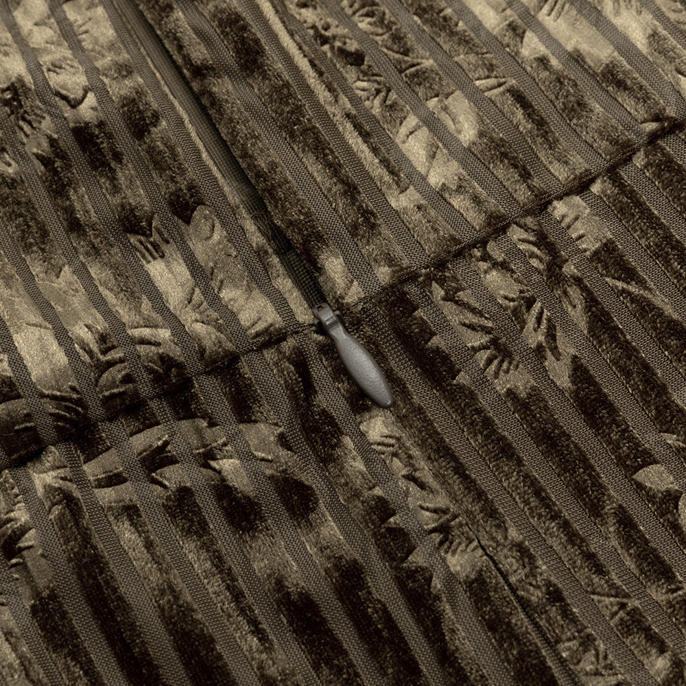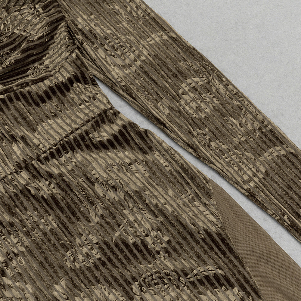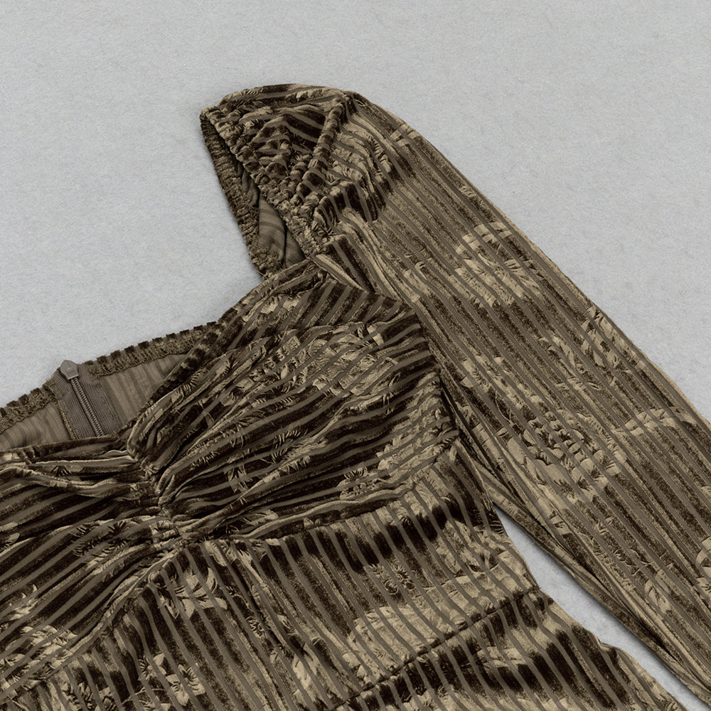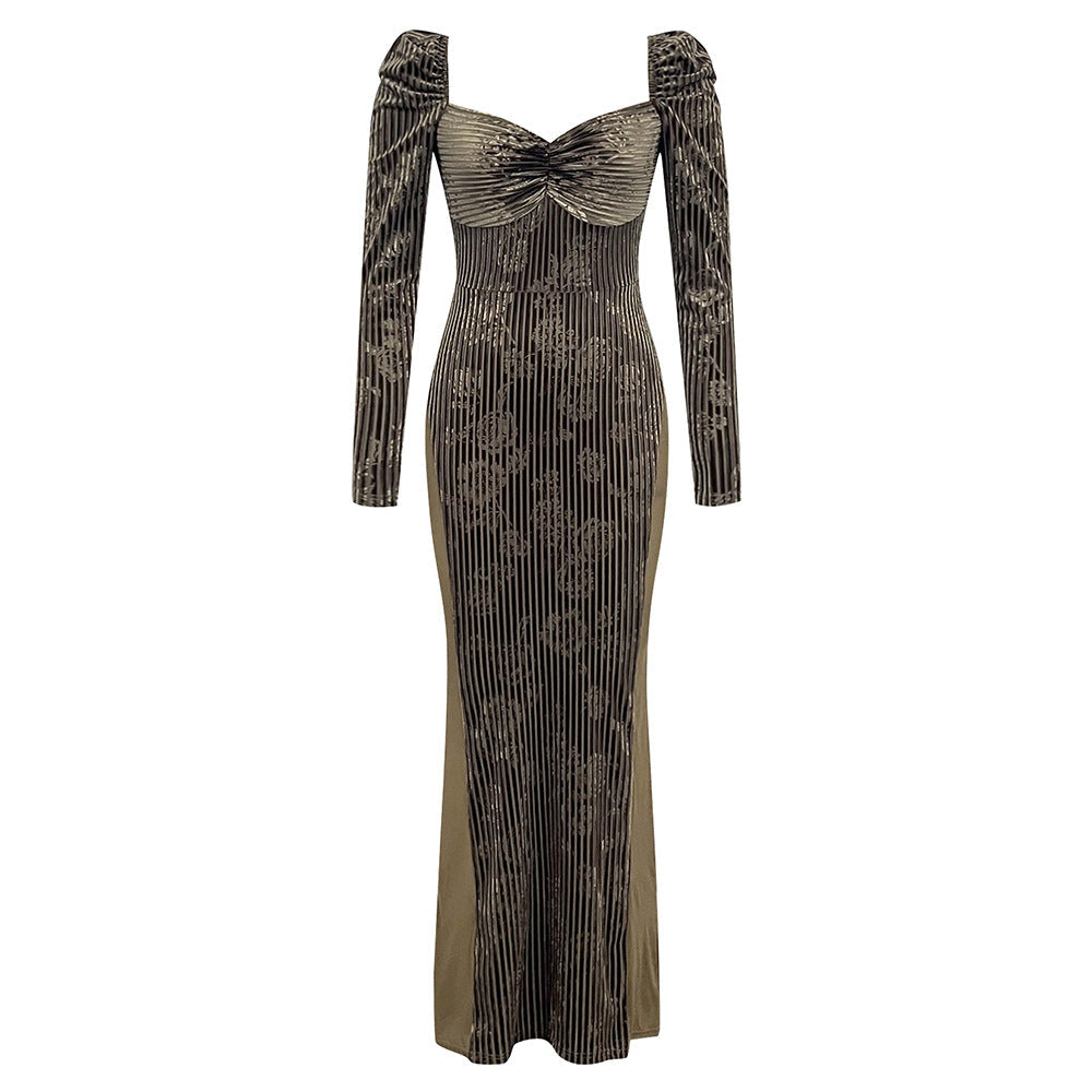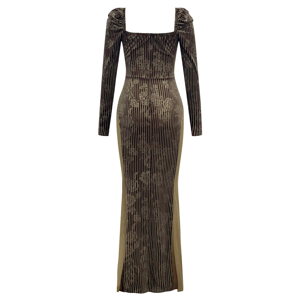 Make a dramatic entrance in this luxurious maxi dress, crafted in pleated printed lace. Featuring a low-cut square neck, long sleeves, and a sweeping silhouette, this sumptuous piece will guarantee you make a lasting impression.