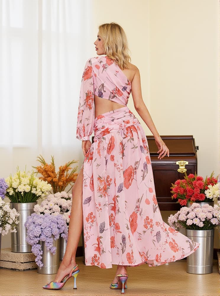Mack One Shoulder Floral Cutout Midi Dress