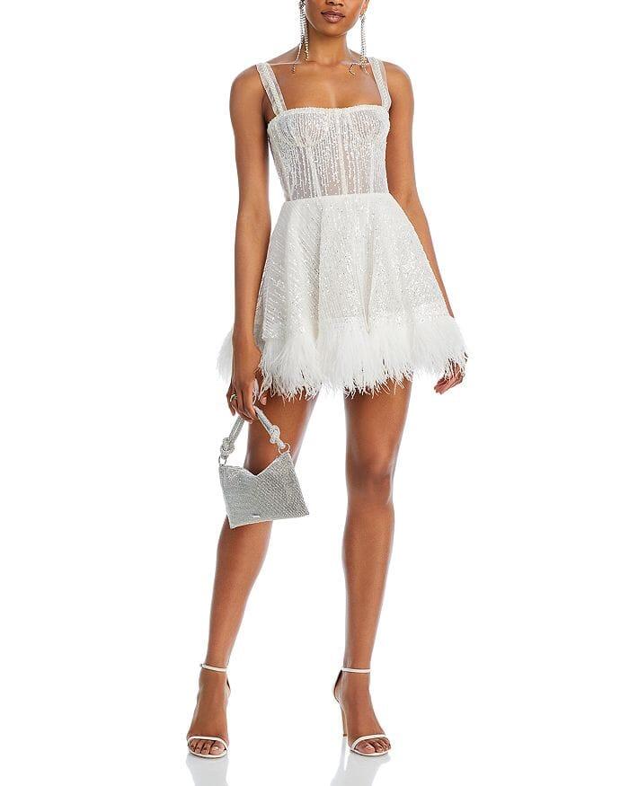 • Feather trim at hem