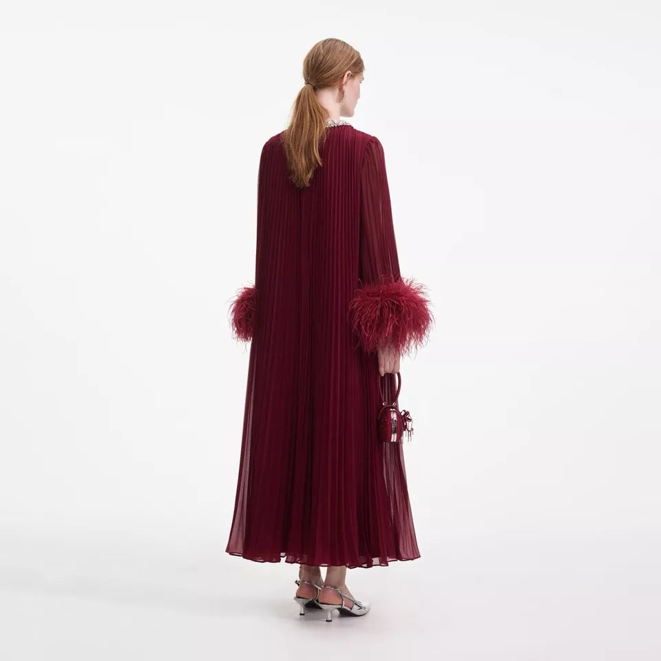 Manja Diamante Chiffon Feather Maxi Dress - Red