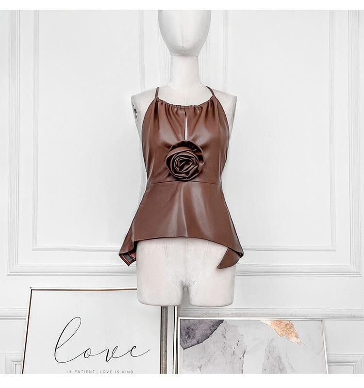 LEATHER FLOWER TOP
