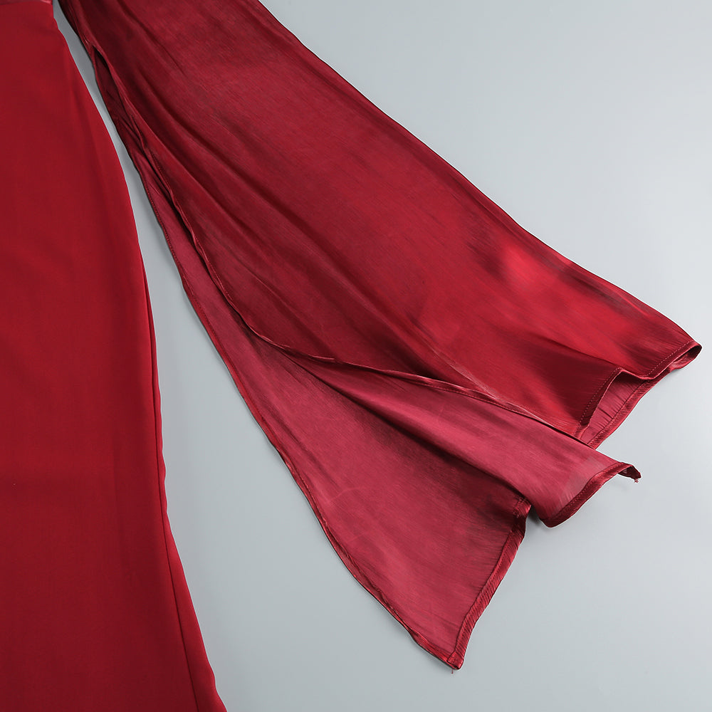 MARCIA TRUMPET SLIT SLEEVE BODYCON MAXI DRESS IN RED