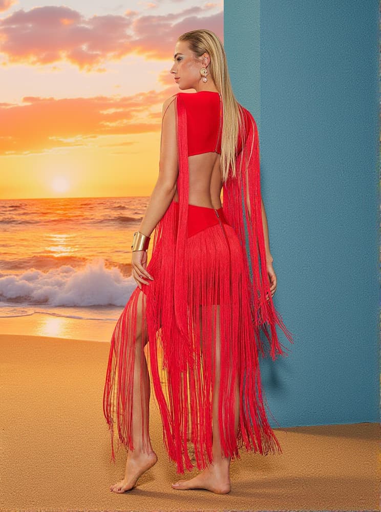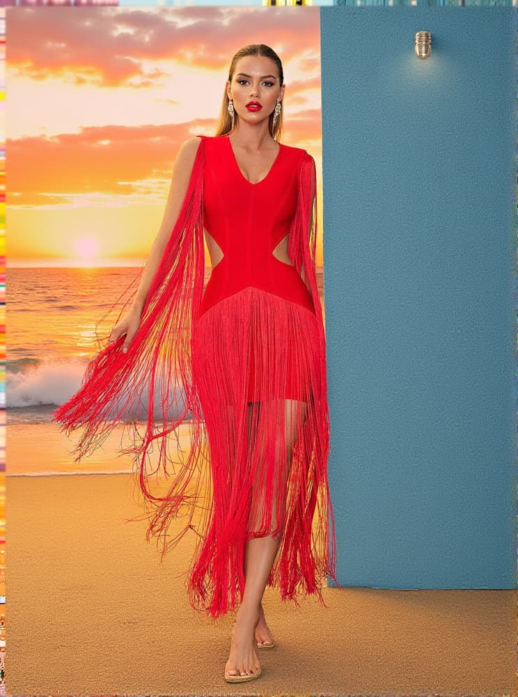 Mariko Fringe Cutout Bandage Dress