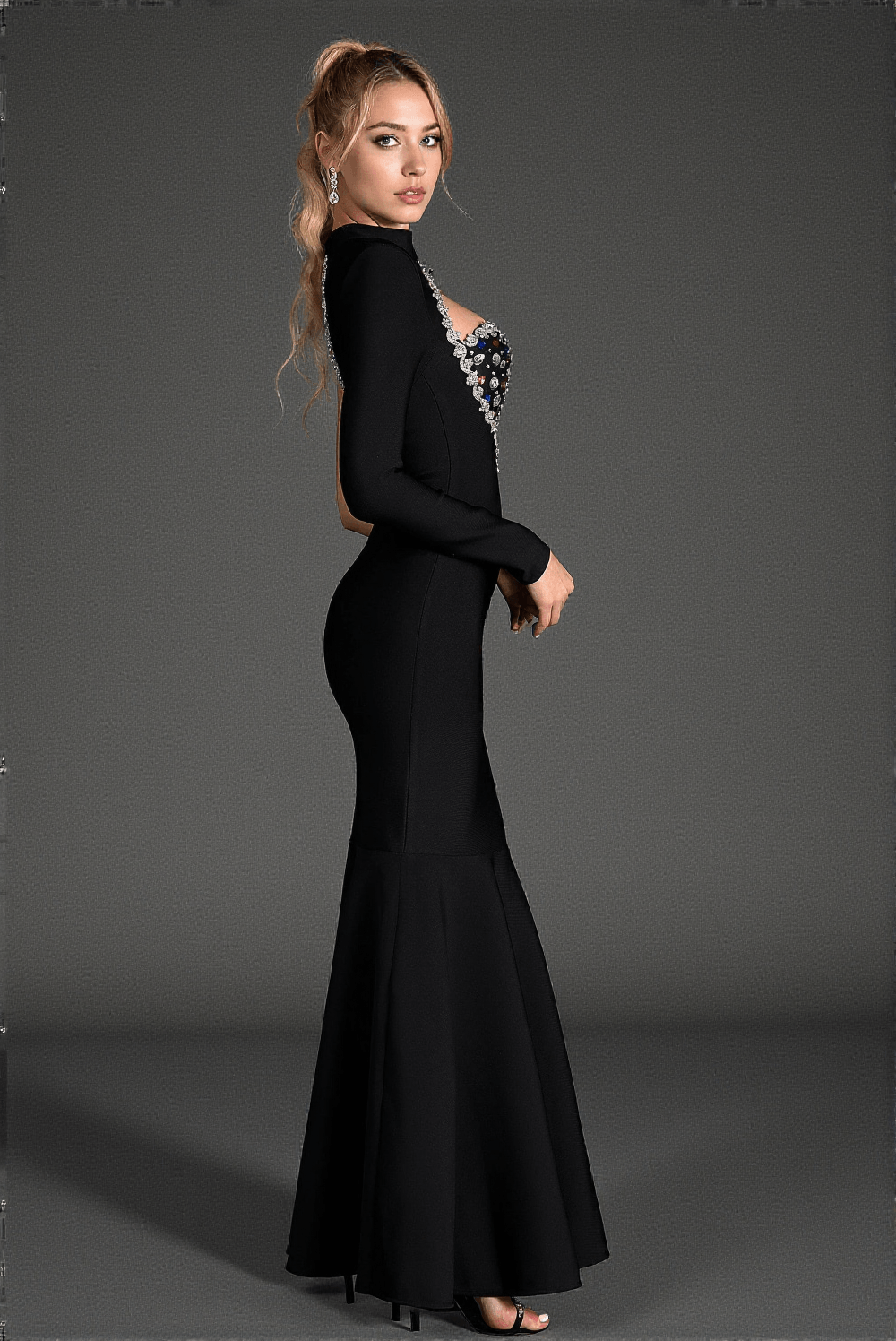 This stunning Martelis One Shoulder Crystal Mermaid Dress exudes elegance and sophistication, perfect for making a bold statement at your next formal event. Its unique design features an asymmetrical one-shoulder silhouette, with one side elegantly showcasing a long sleeve while the other is left completely bare, adding an irresistible allure.
