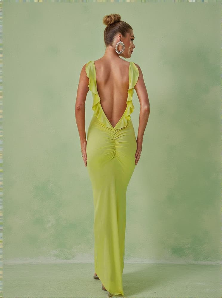 Marzia Backless Maxi Dress In Green