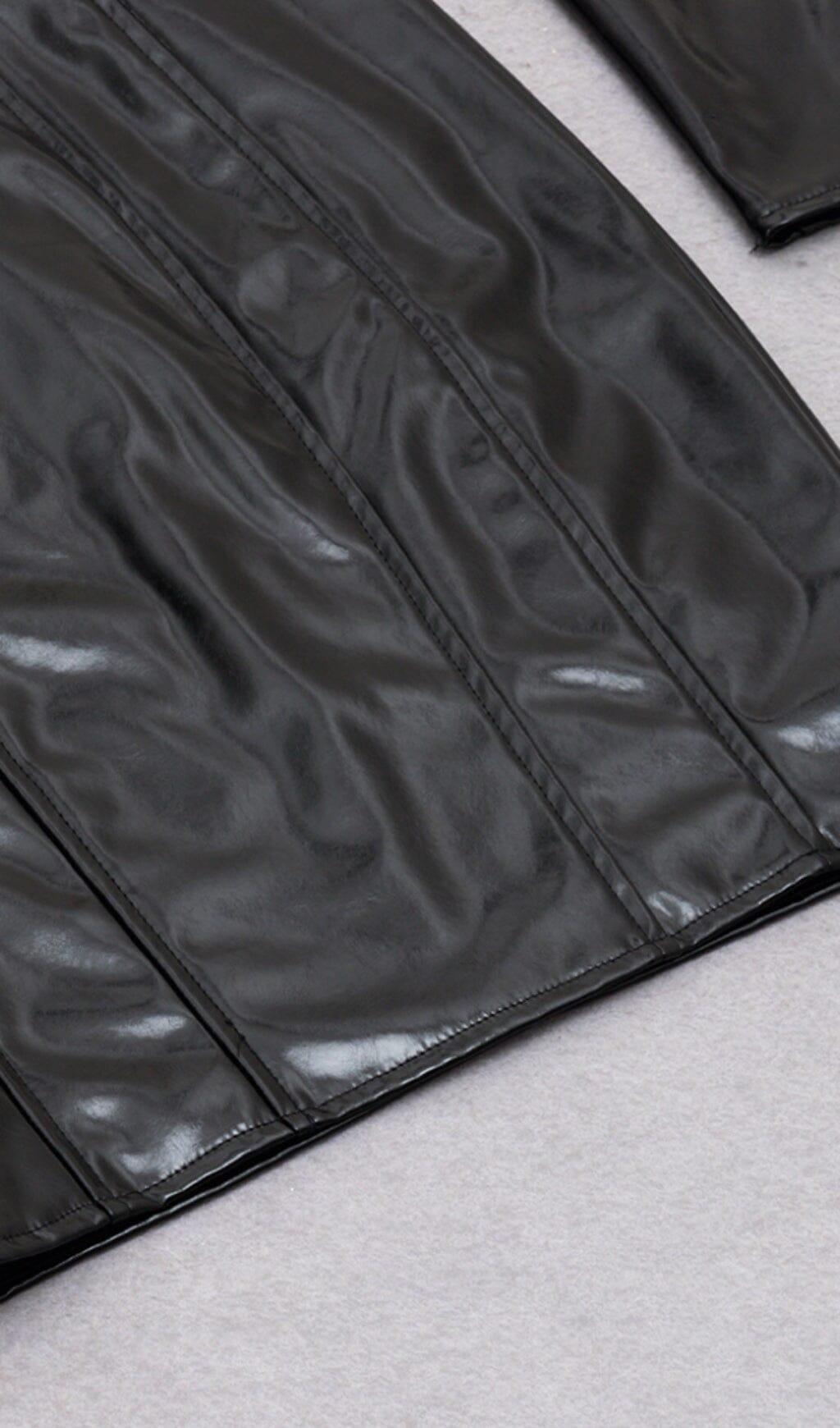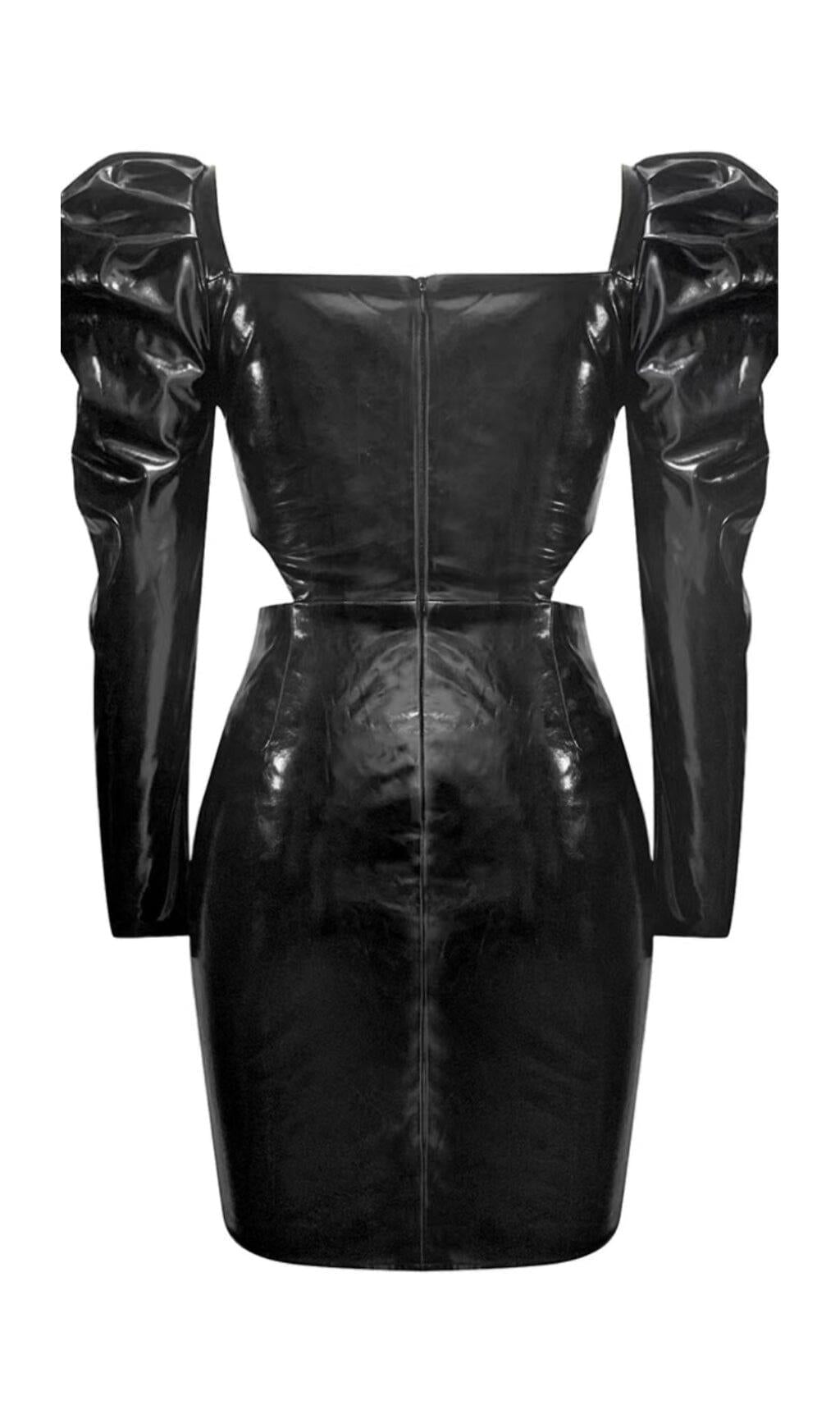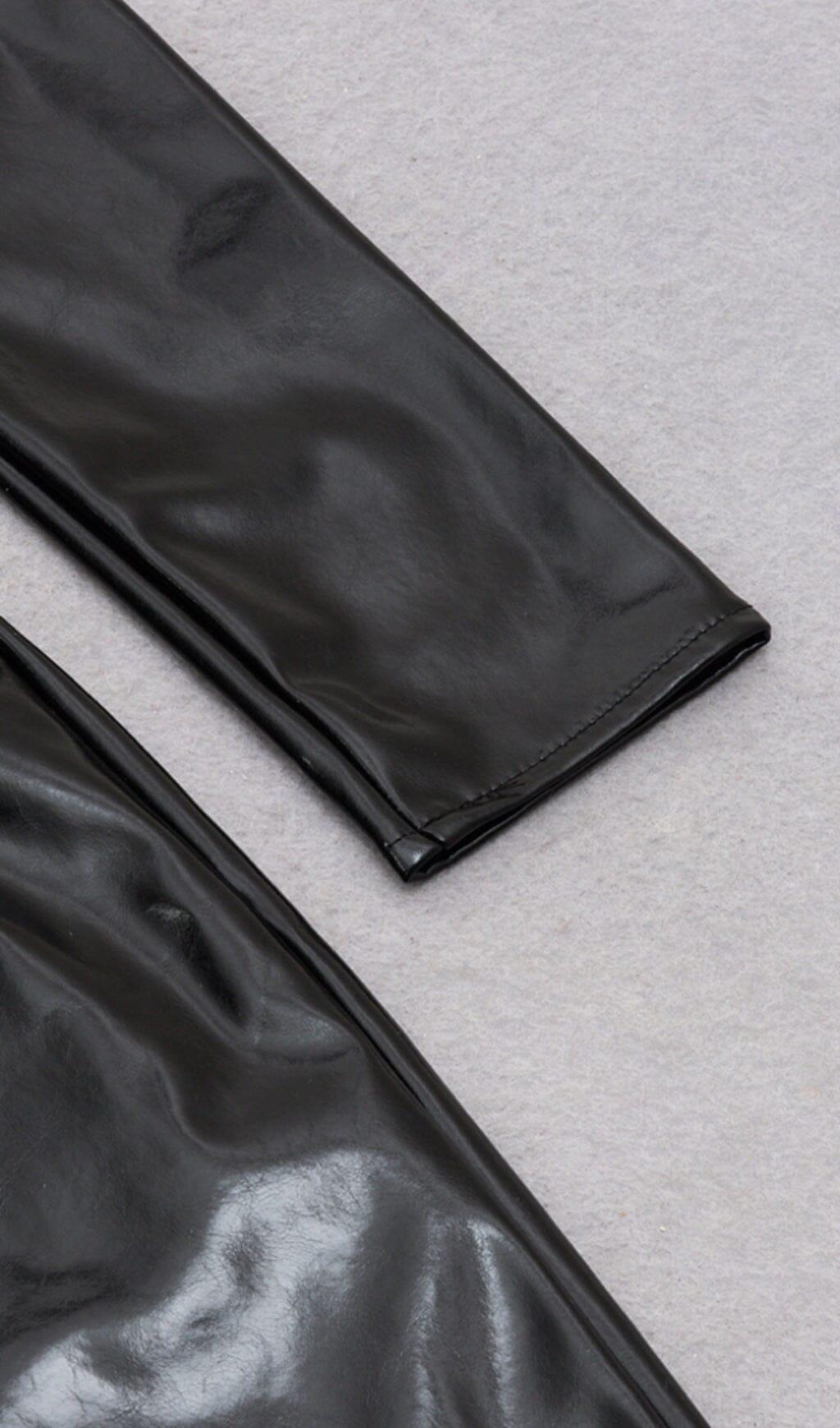 MATTE LEATHER WAIST CUT OUT HIP WRAP DRESS IN BLACK
