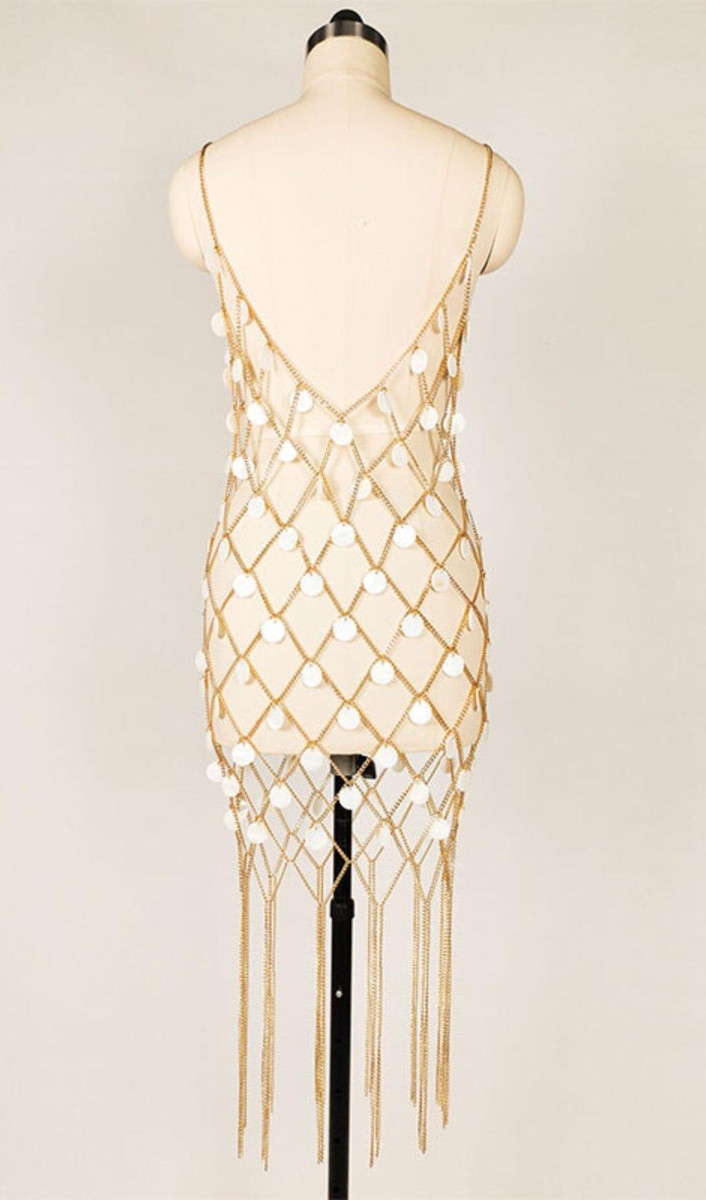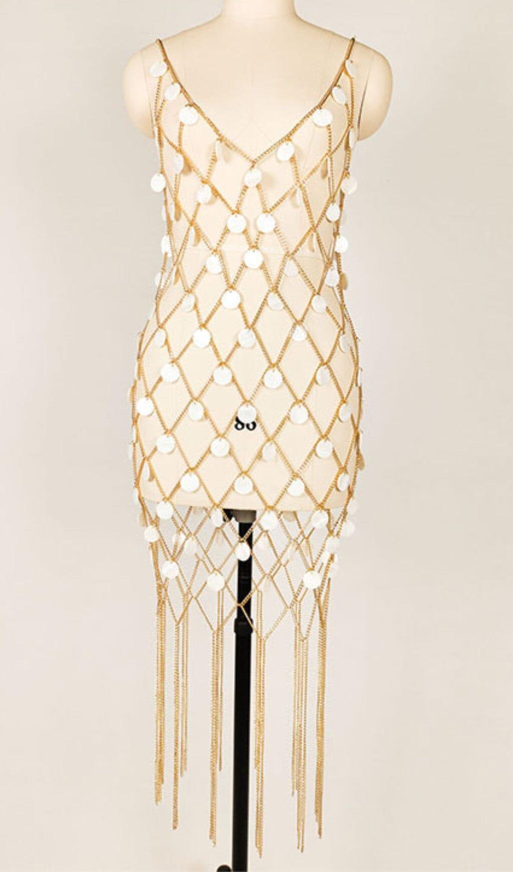 EMBELLISHED FRINGE BODY CHAIN DRESS