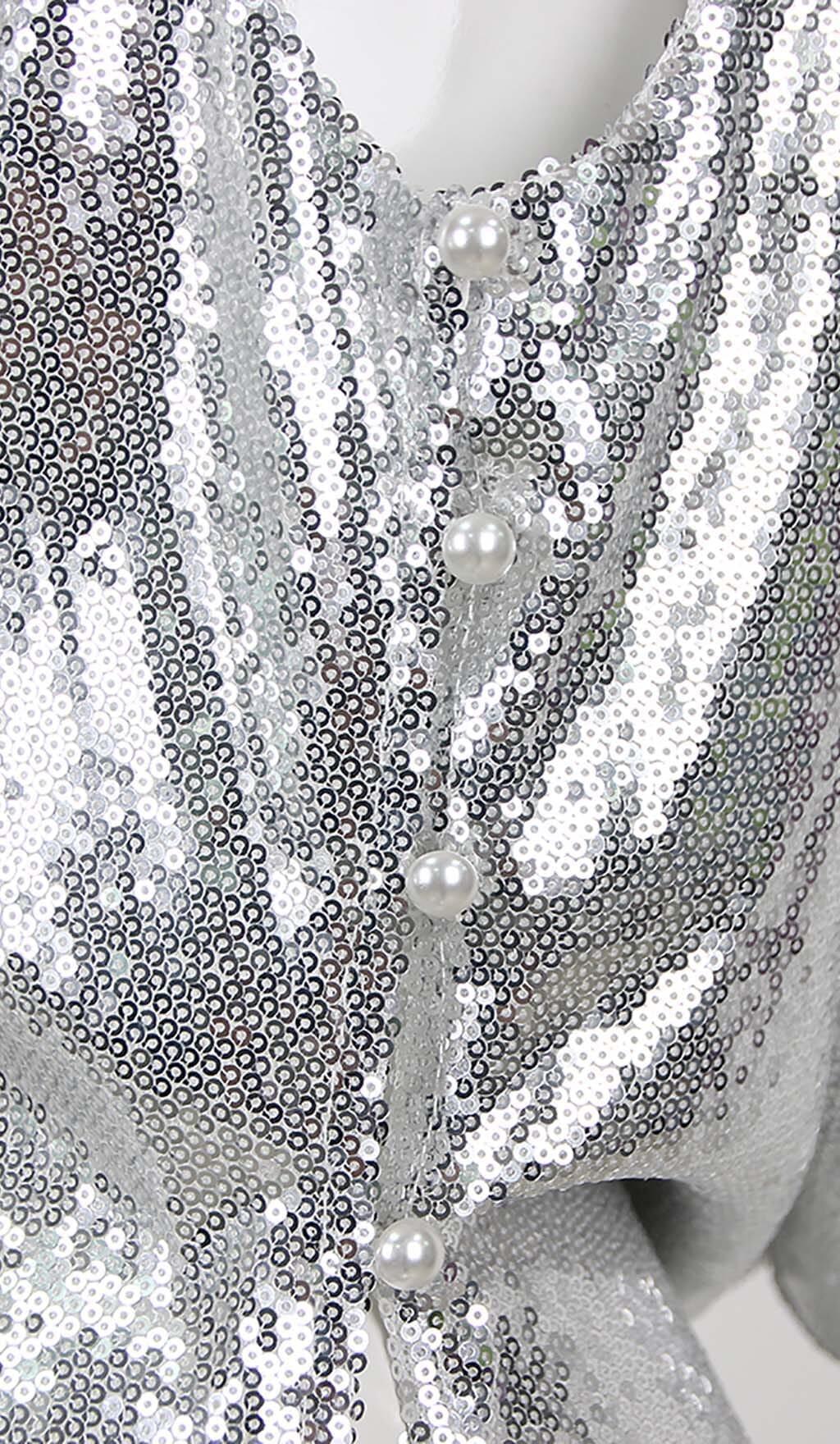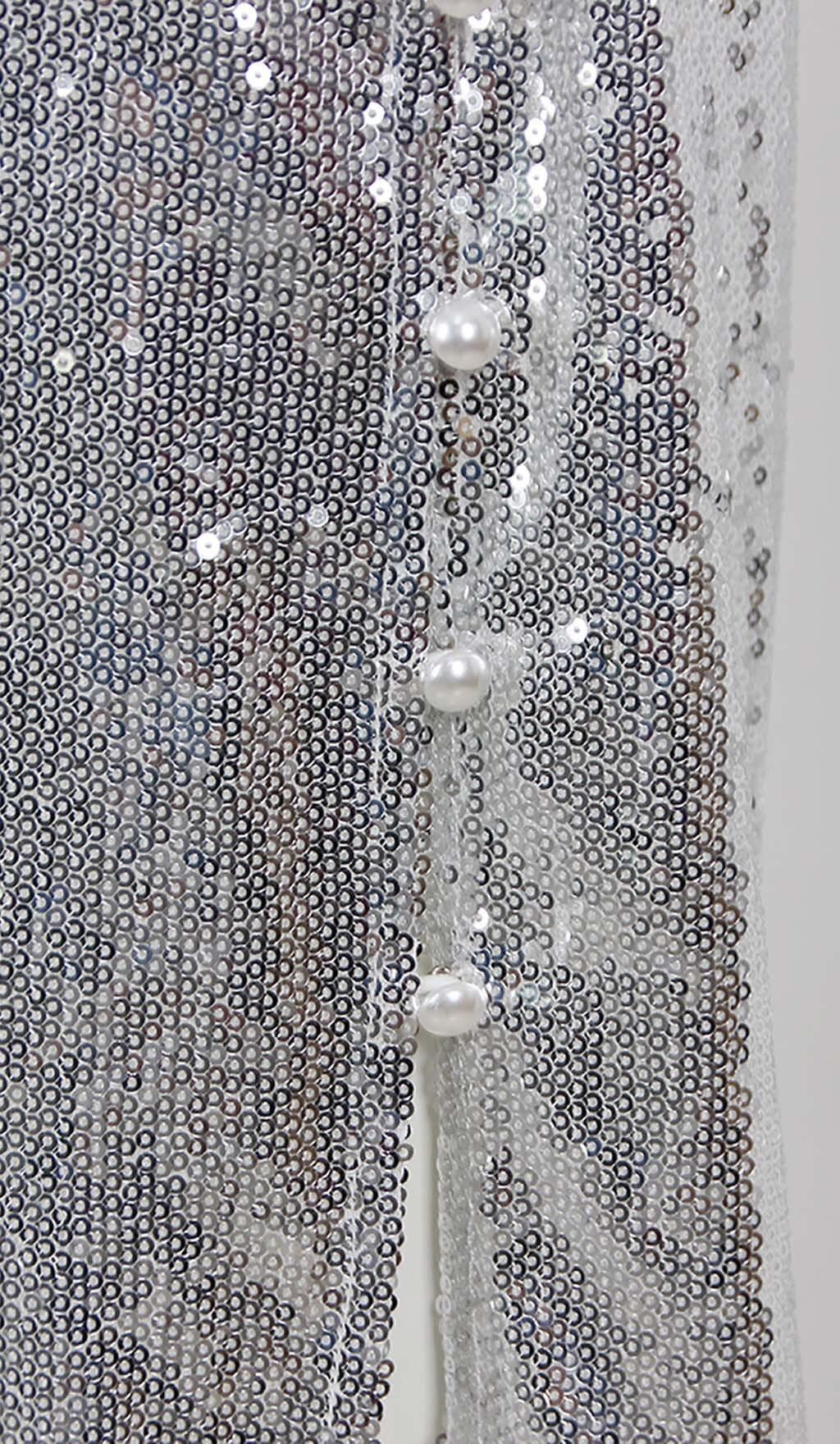 MBELLISHED V-NECK COLUMN GOWN IN SILVER