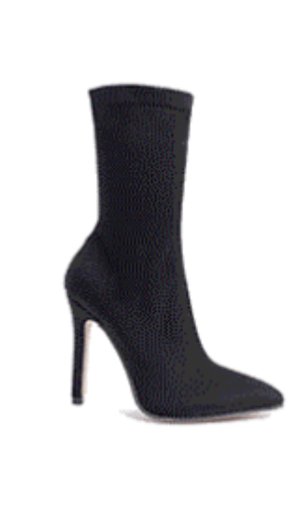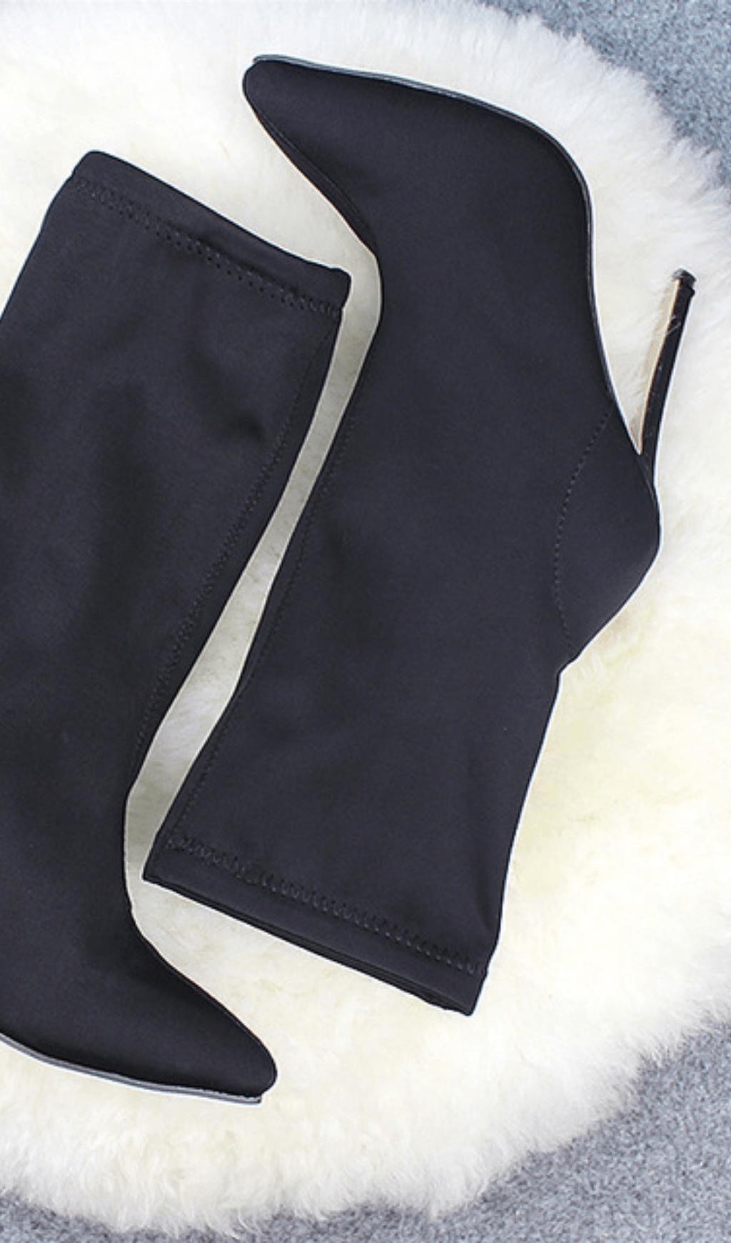 • Pointed stretch cloth for mid-tube boots - A unique design element that sets these heels apart.