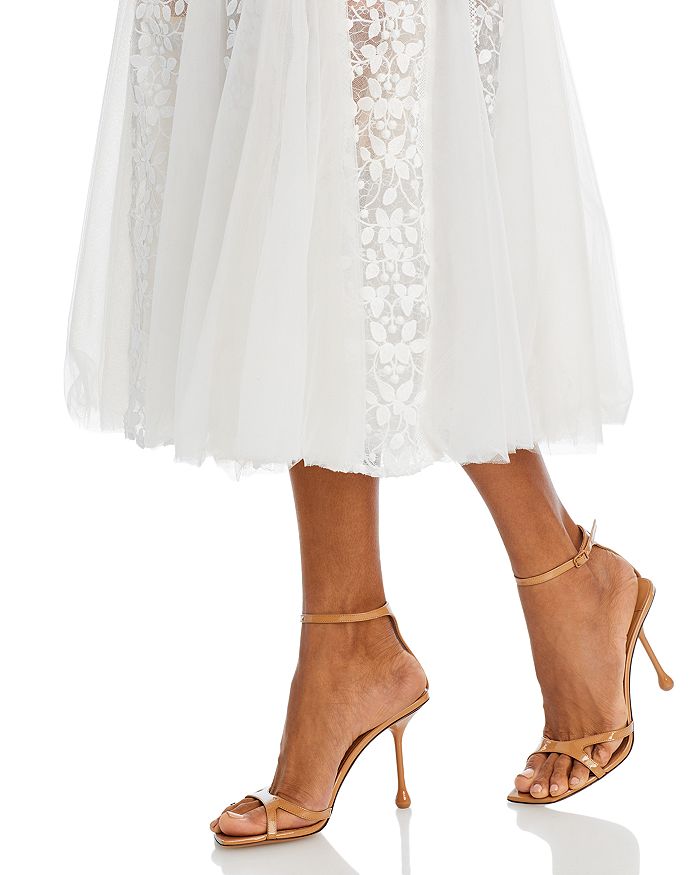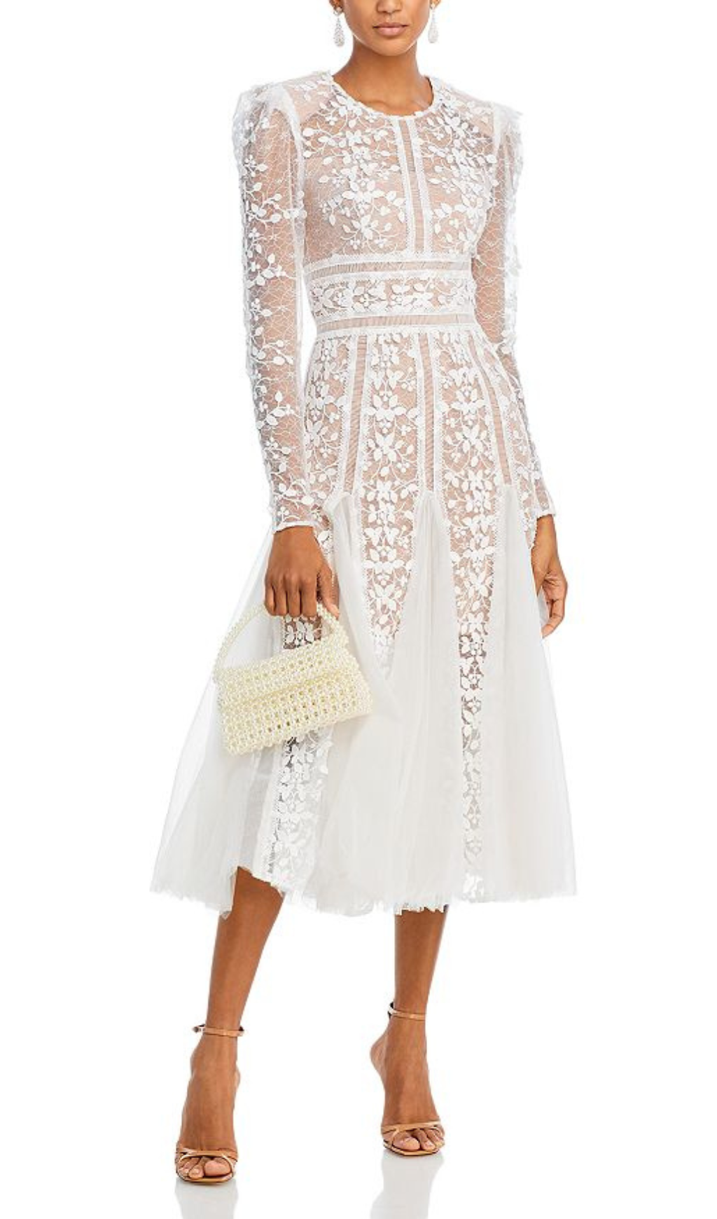 This stylish dress features delicate lace details that will make you stand out in any crowd. With its midi length, it's the perfect balance of elegance and playfulness. Get ready to turn heads and make a statement with this one-of-a-kind dress.