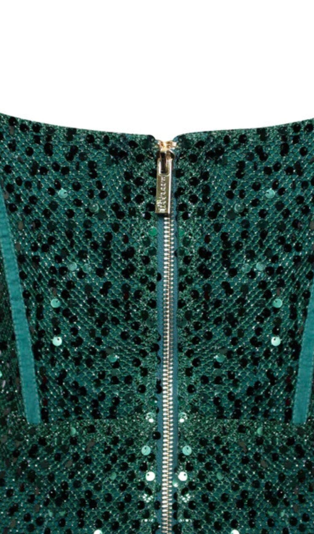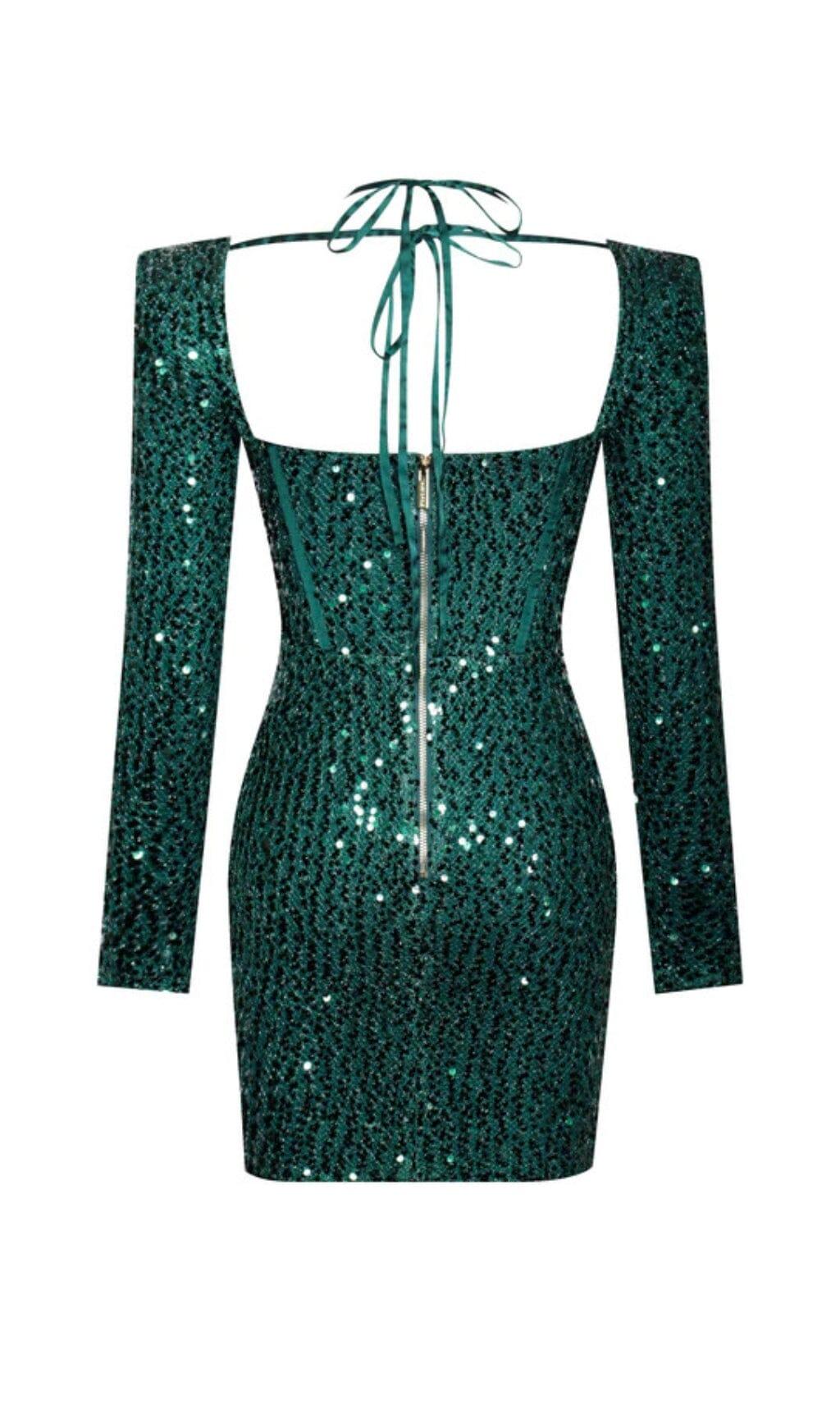 MELINA EMERALD GREEN LONG SLEEVE SEQUIN DRESS