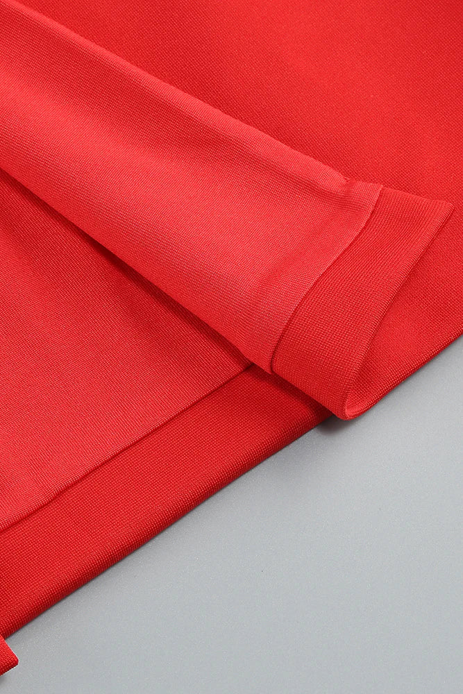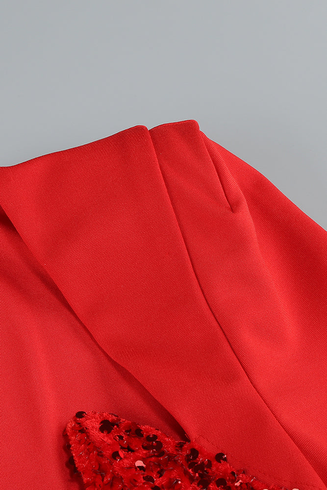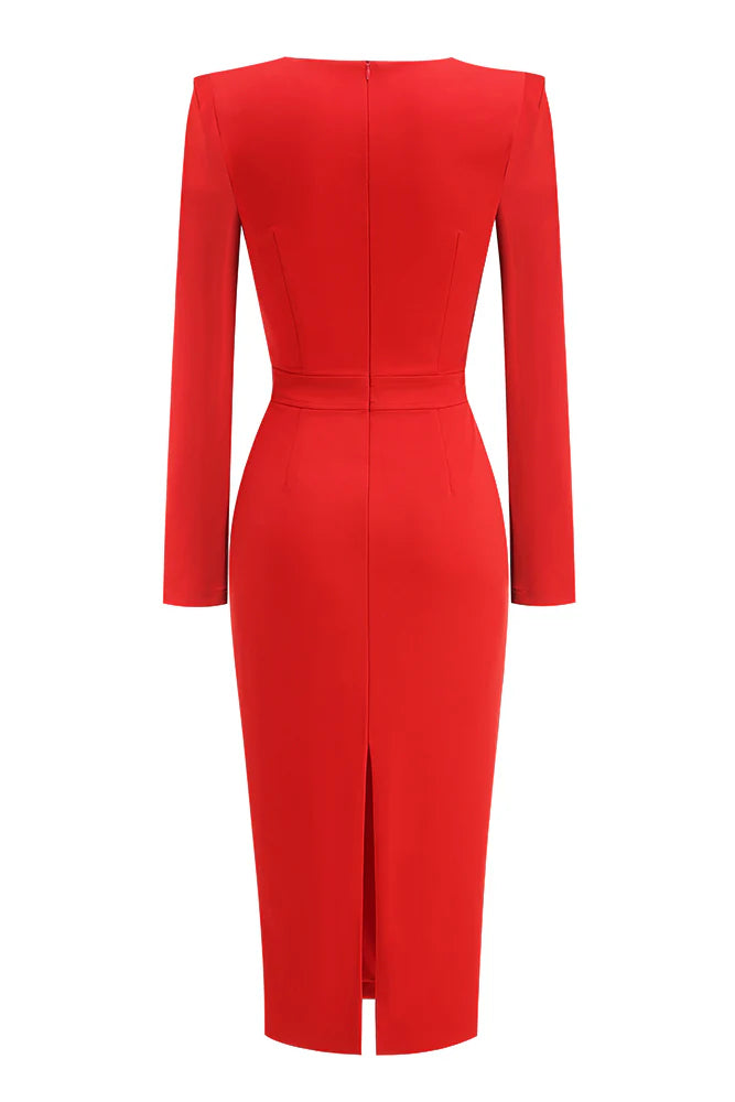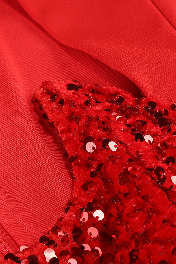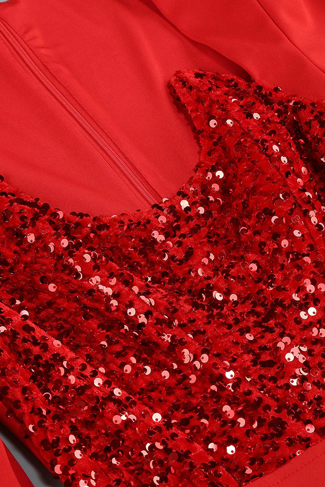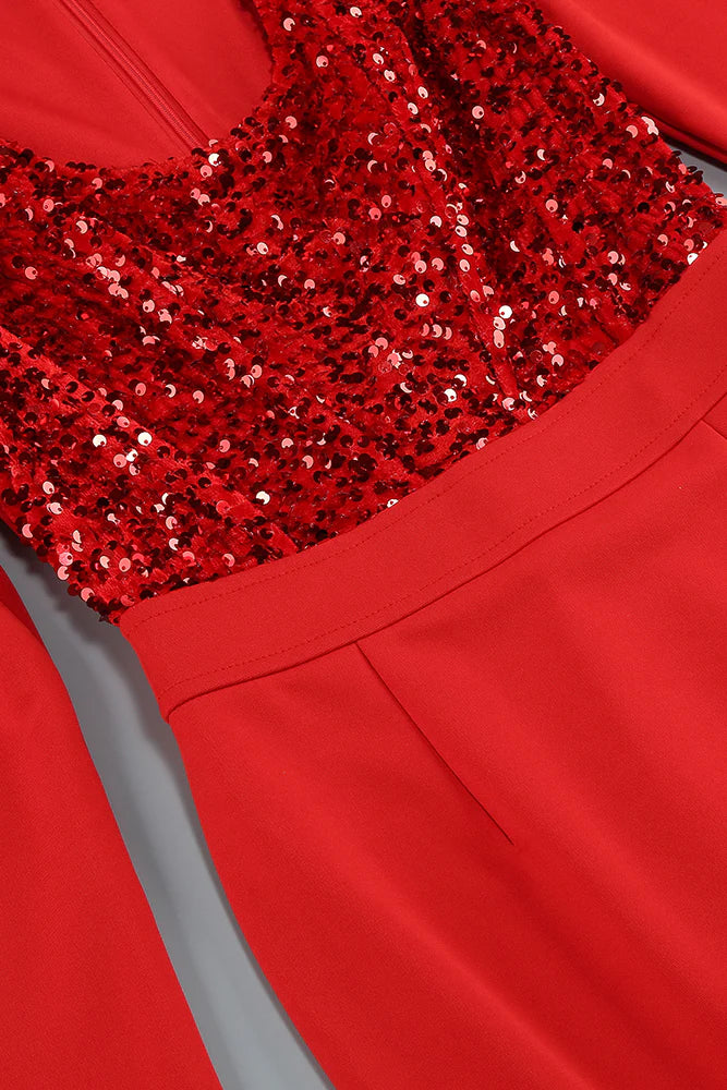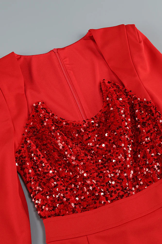 MELISSA LONG SLEEVE PATCHWORK SEQUIN MIDI DRESS IN RED