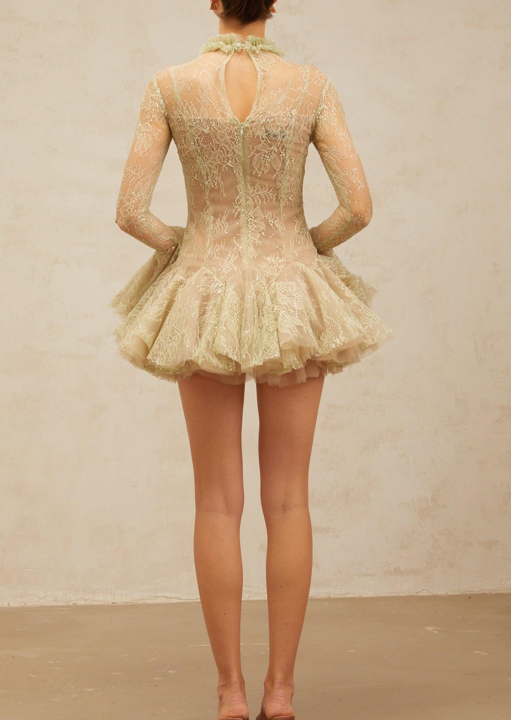 Green Embroidered Flared Mini Dress