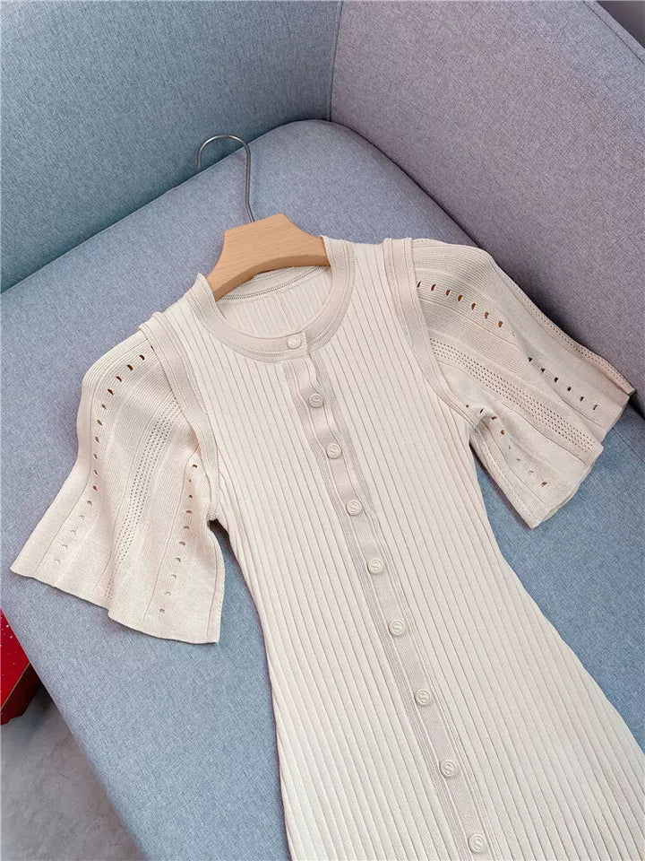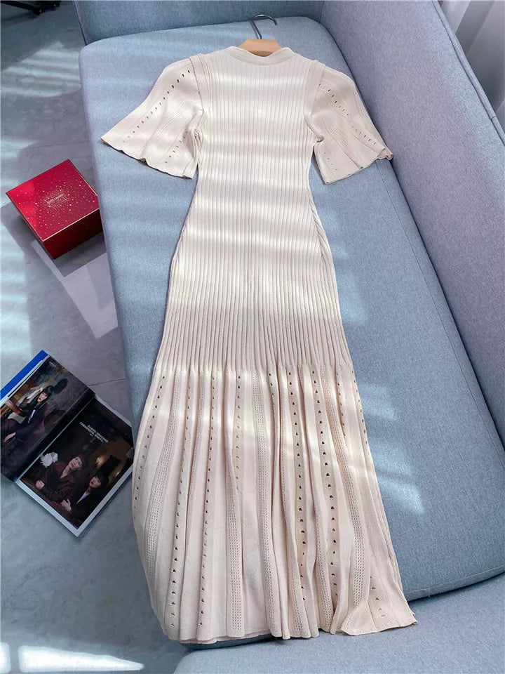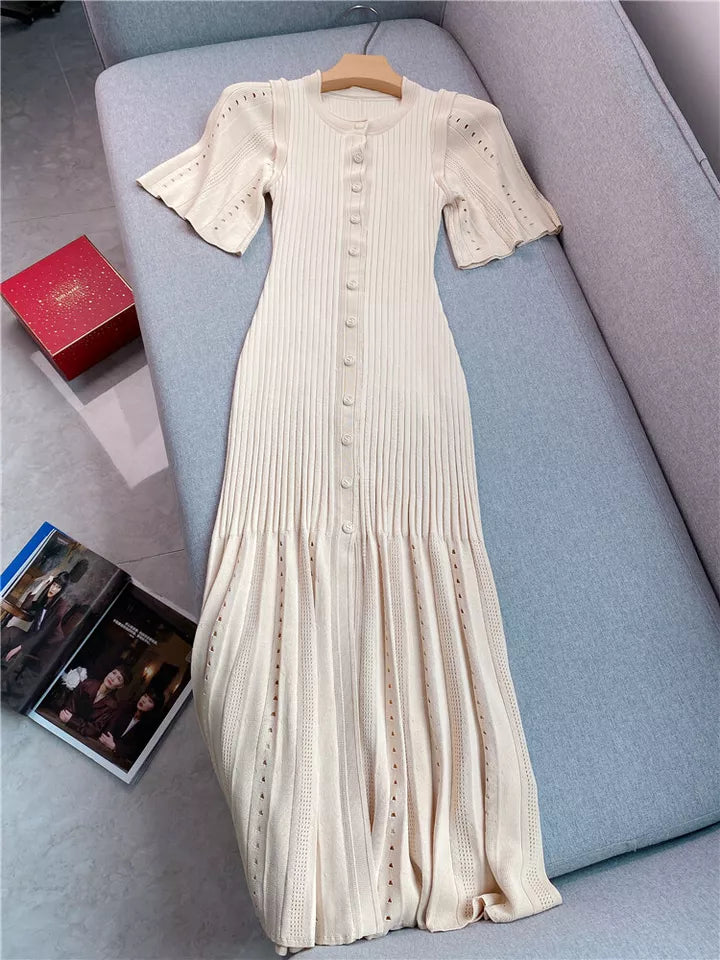Crafted in a chic beige hue, this dress combines comfort and style with its soft knit fabric and midi length. Perfect for a casual day out or a cozy night in, this dress is a must-have for any wardrobe. So go ahead, make a statement with this quirky and versatile piece!
