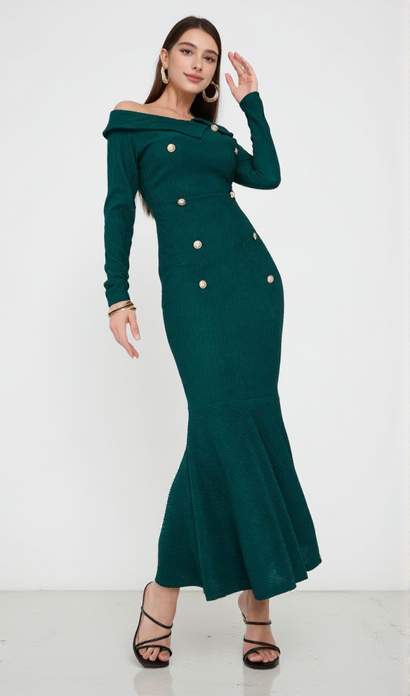 MERMAID LONG SLEEVE MAXI DRESS IN GREEN