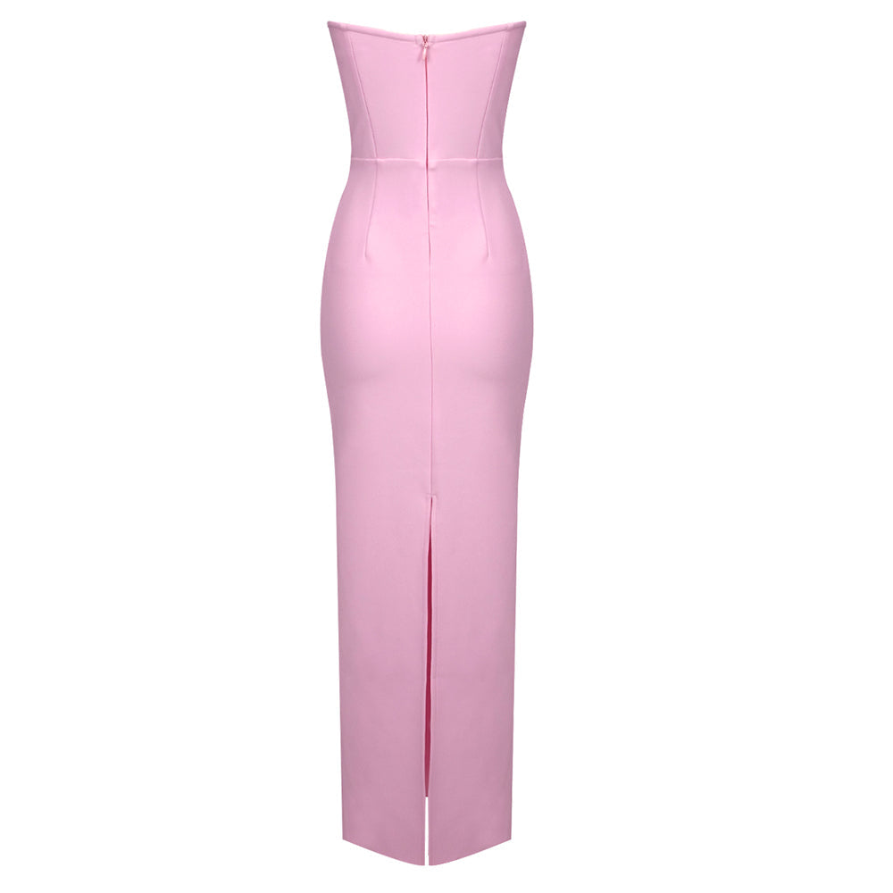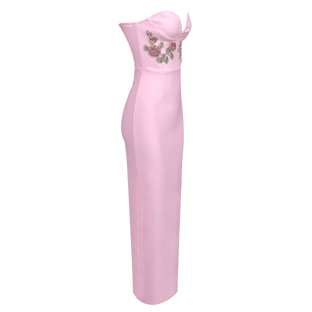 MEROY FLORAL EMBROIDERY STRAPLESS MAXI DRESS IN PINK