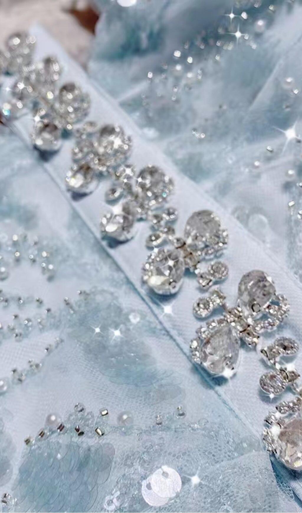 Make a dazzling entrance at any event with our Mesh Diamond Cut-Out Waistless Sequin Splid Dress in Light Blue. This dress is designed to make you the most unique work of art in the room, shining differently in different lights.