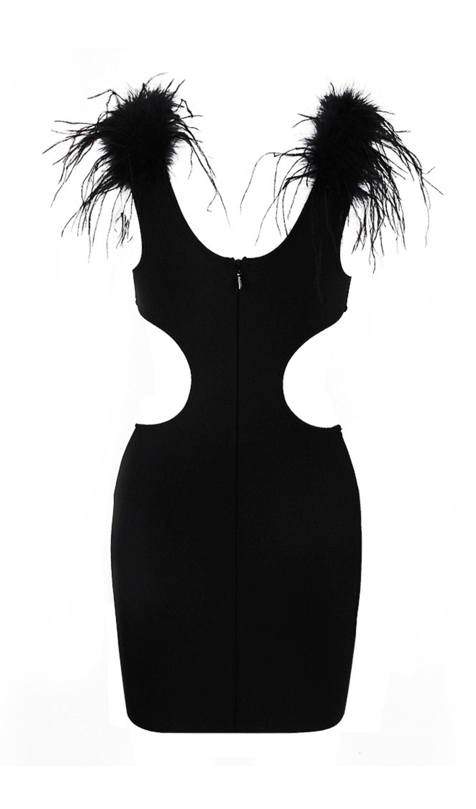 MESH FEARHER BANDAGE MINI DRESS IN BLACK