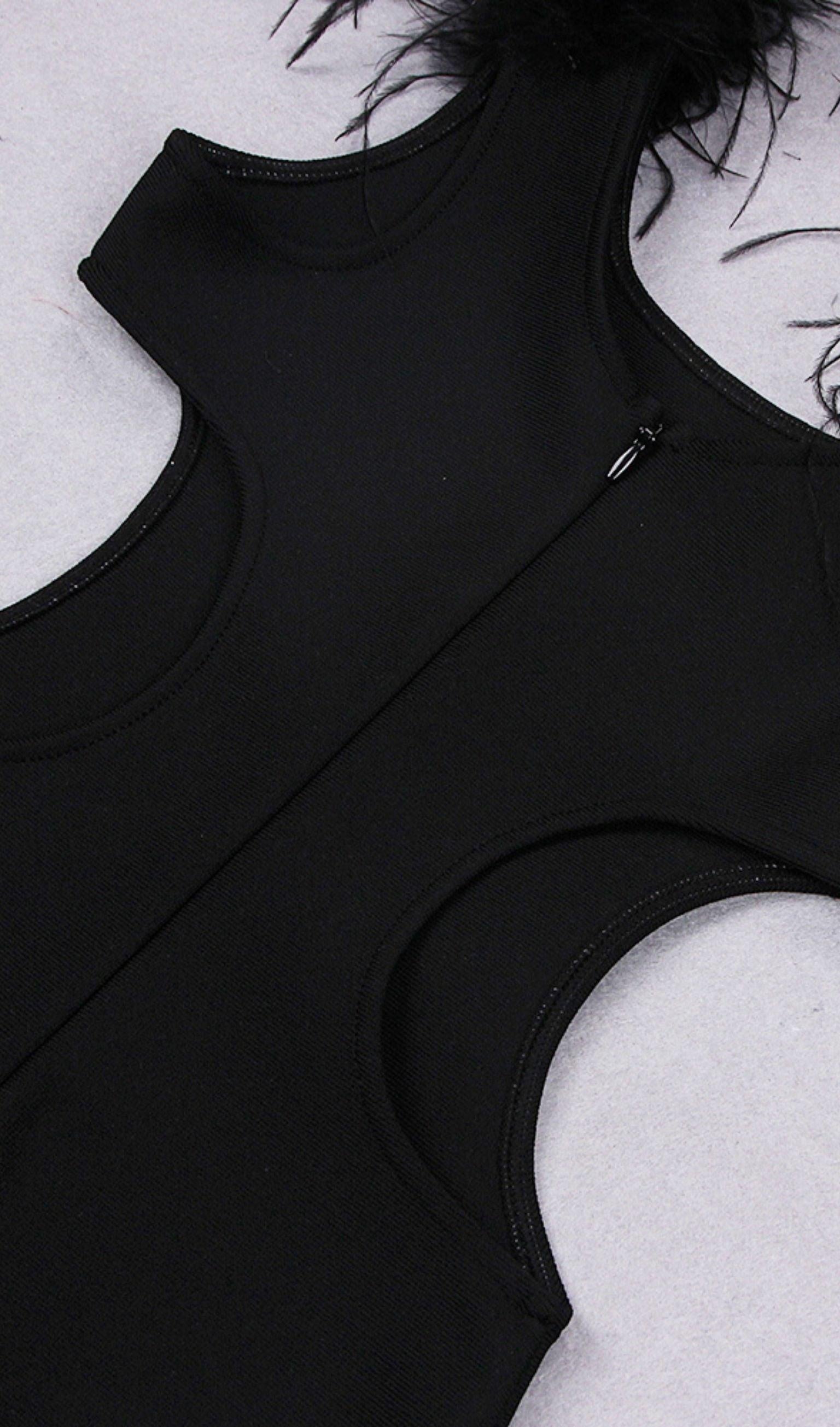 MESH FEATHER BANDAGE MINI DRESS IN BLACK