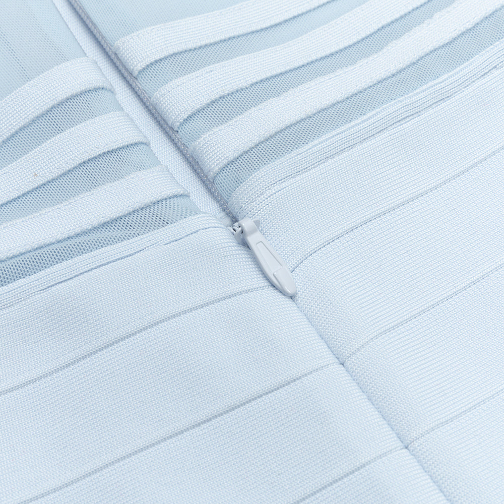 MESH INSERT RIBBED MIDI DRESS LIGHT BLUE