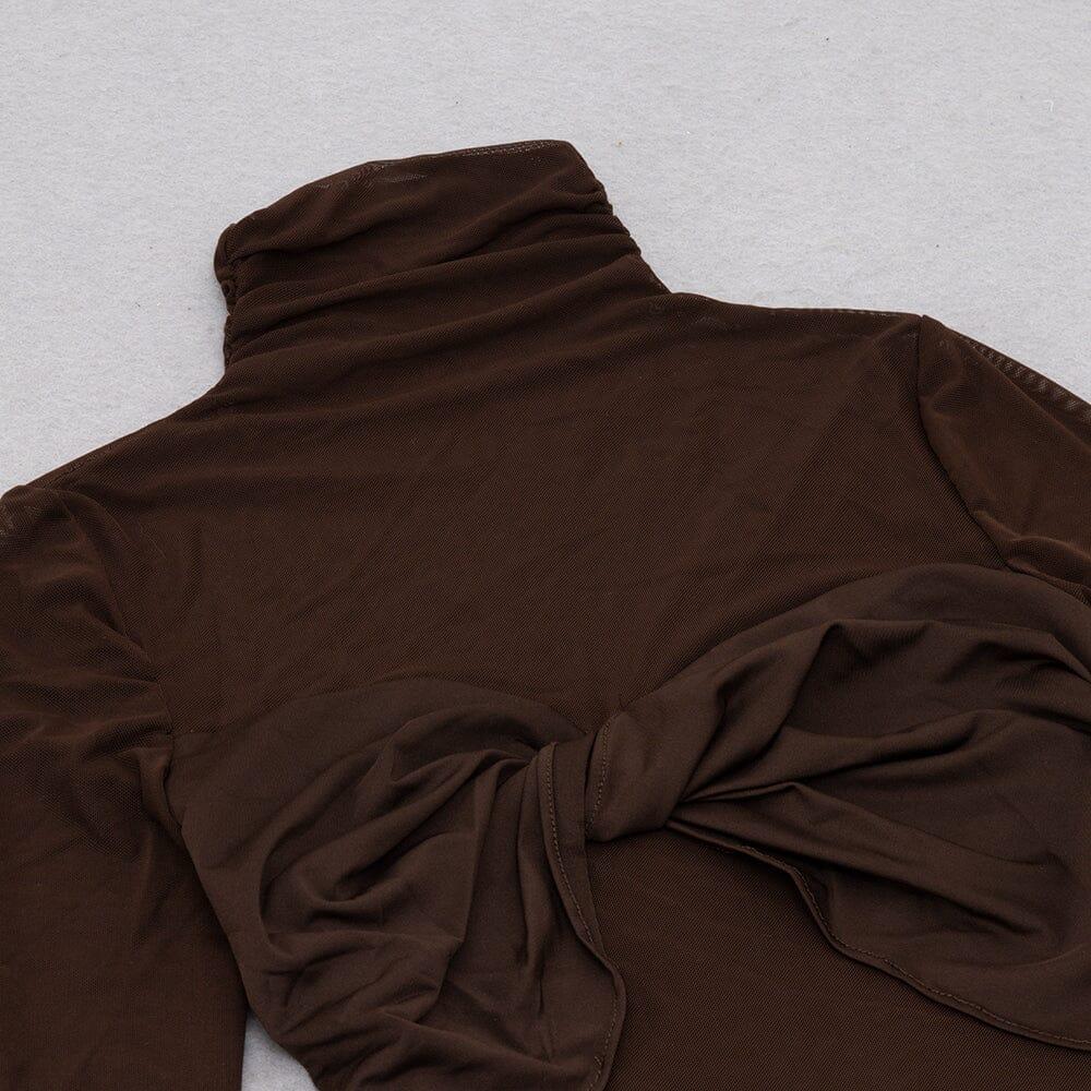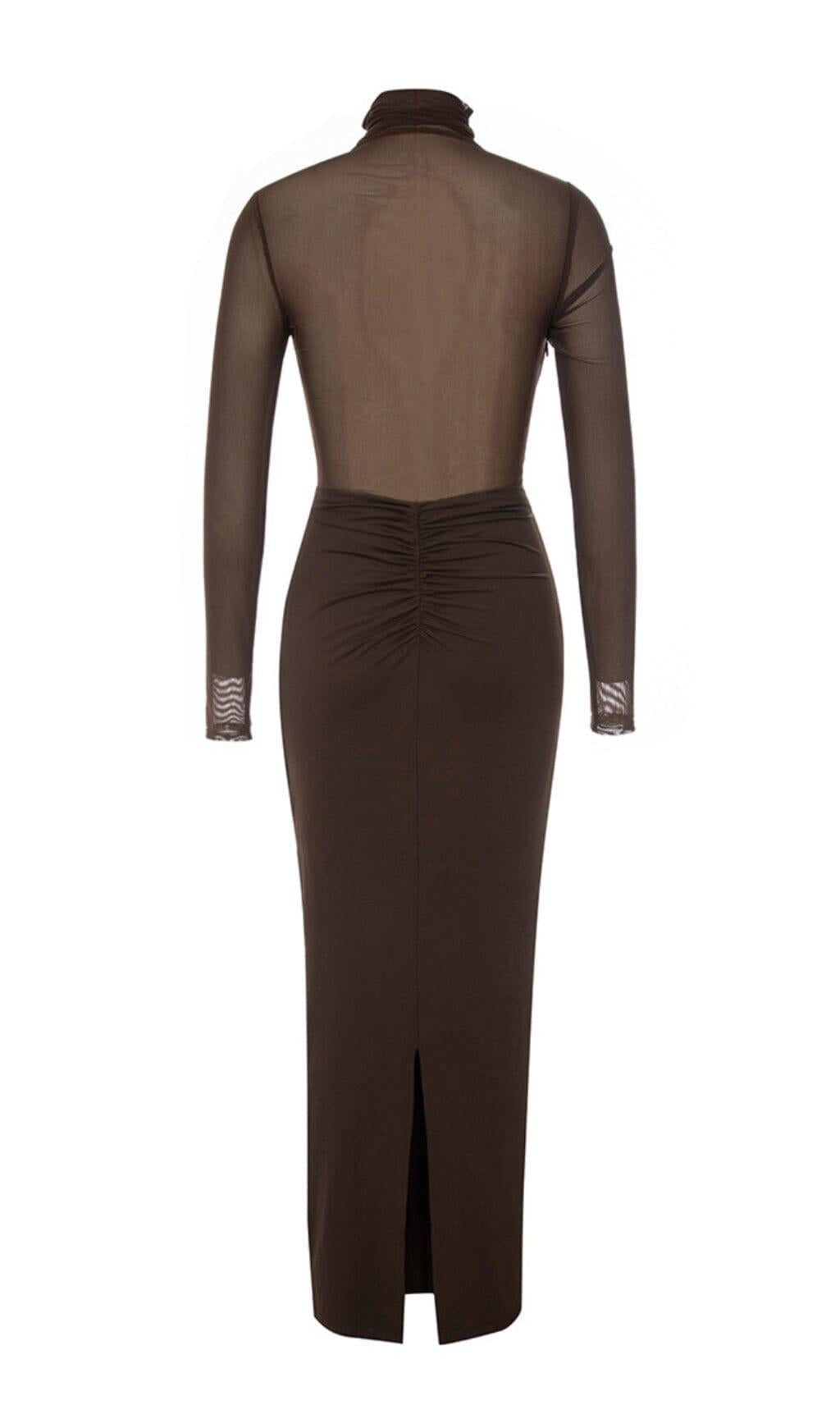 MESH LONG SLEEVE MAXI DRESS IN COFFEE