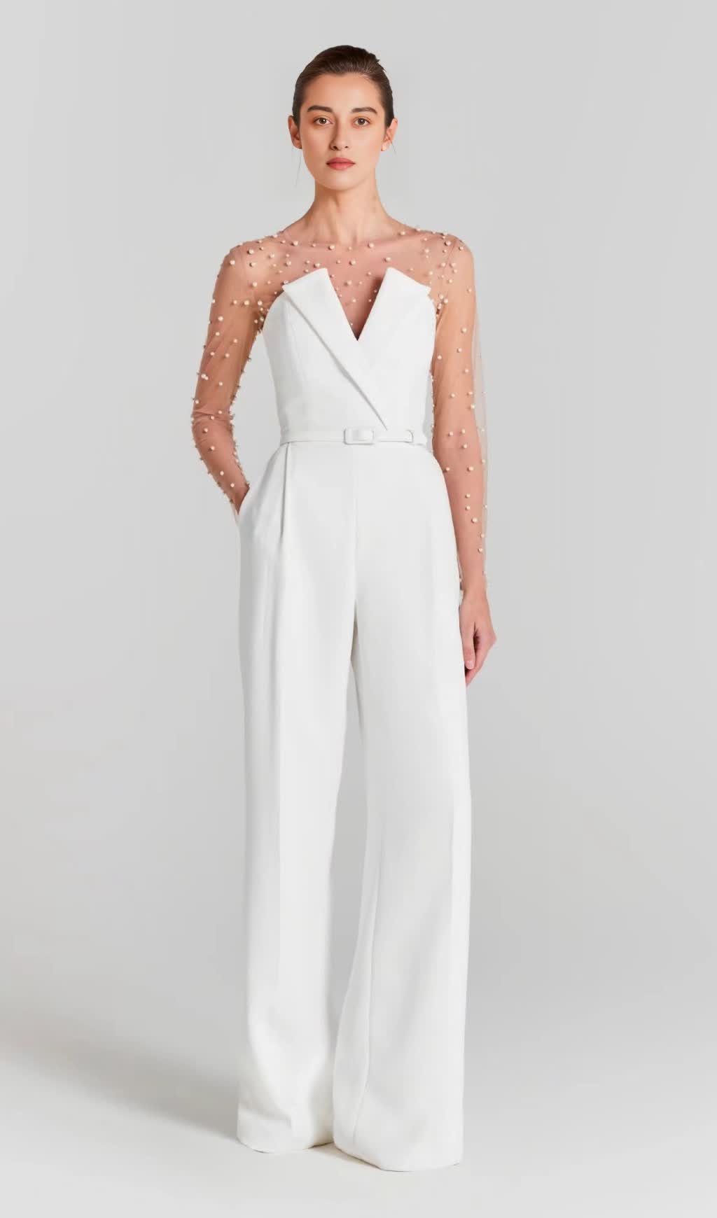 MESH PEARL JUMPSUIT TWO PIECE
