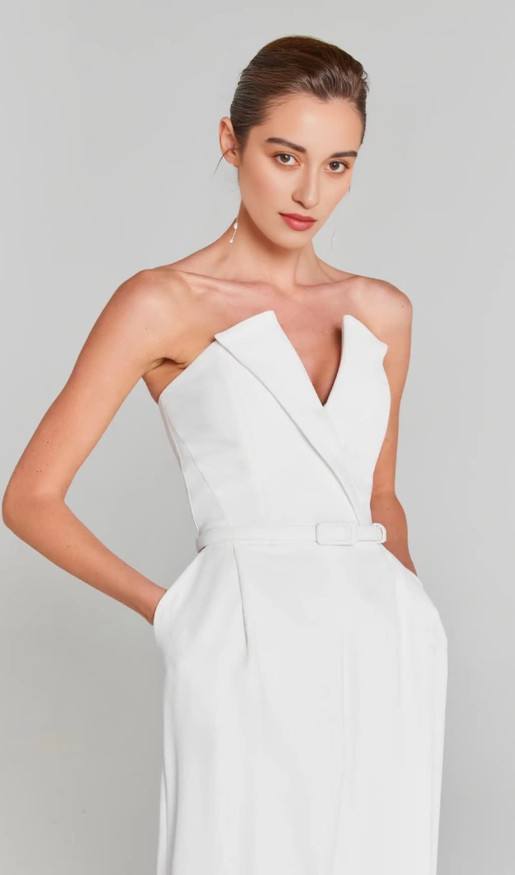 - Structured bodice with a tailored fit