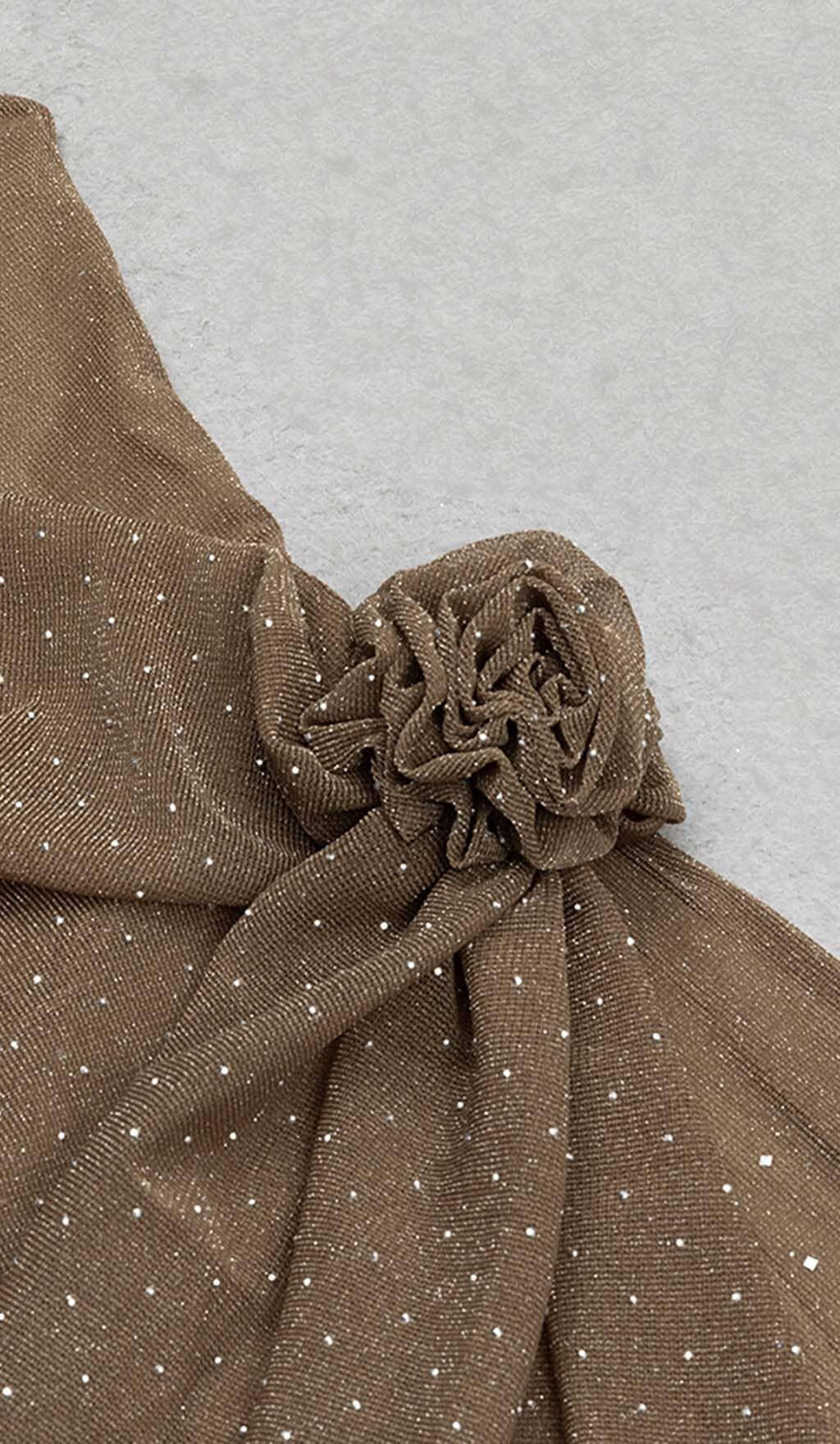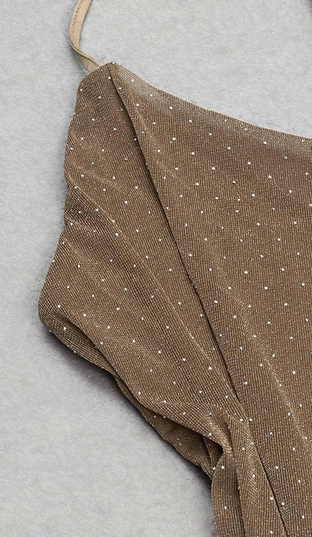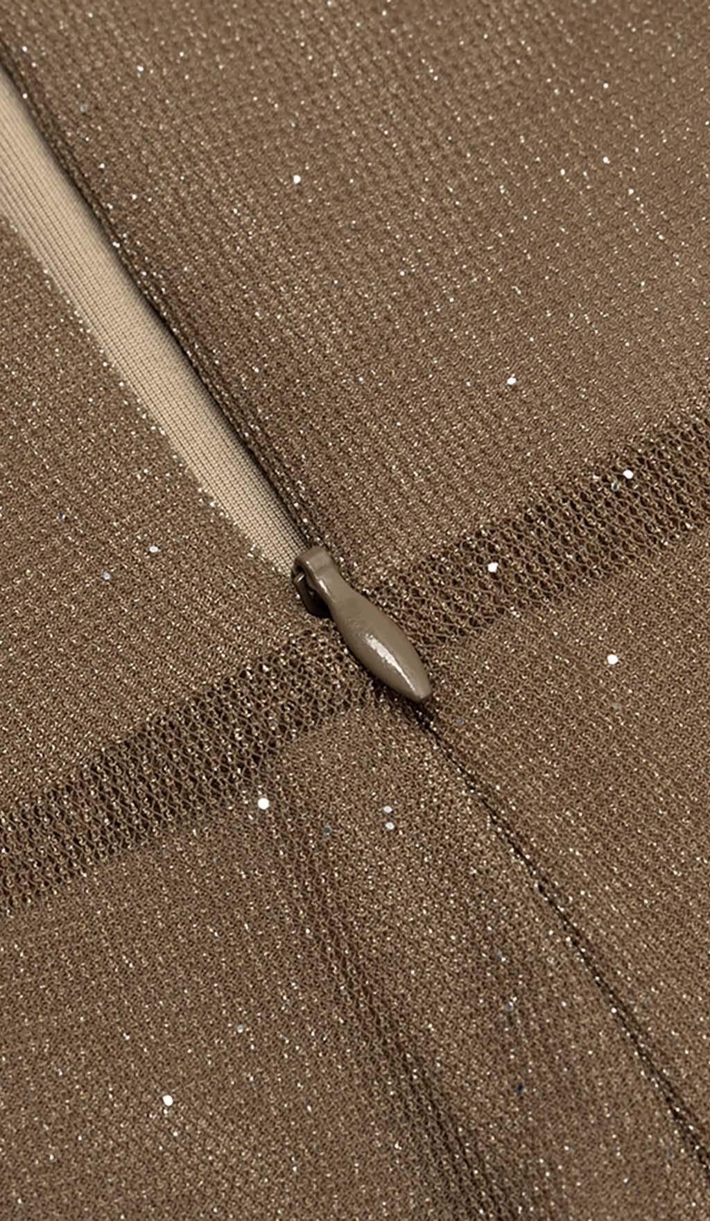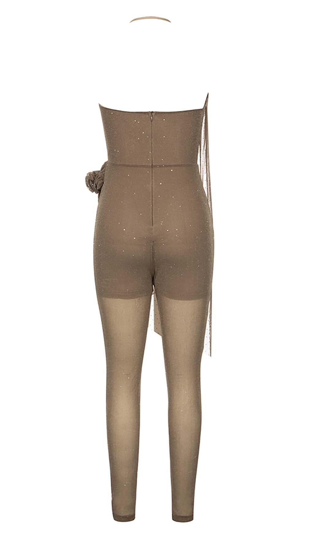 MESH PLUNGE JUMPSUIT IN BROWN