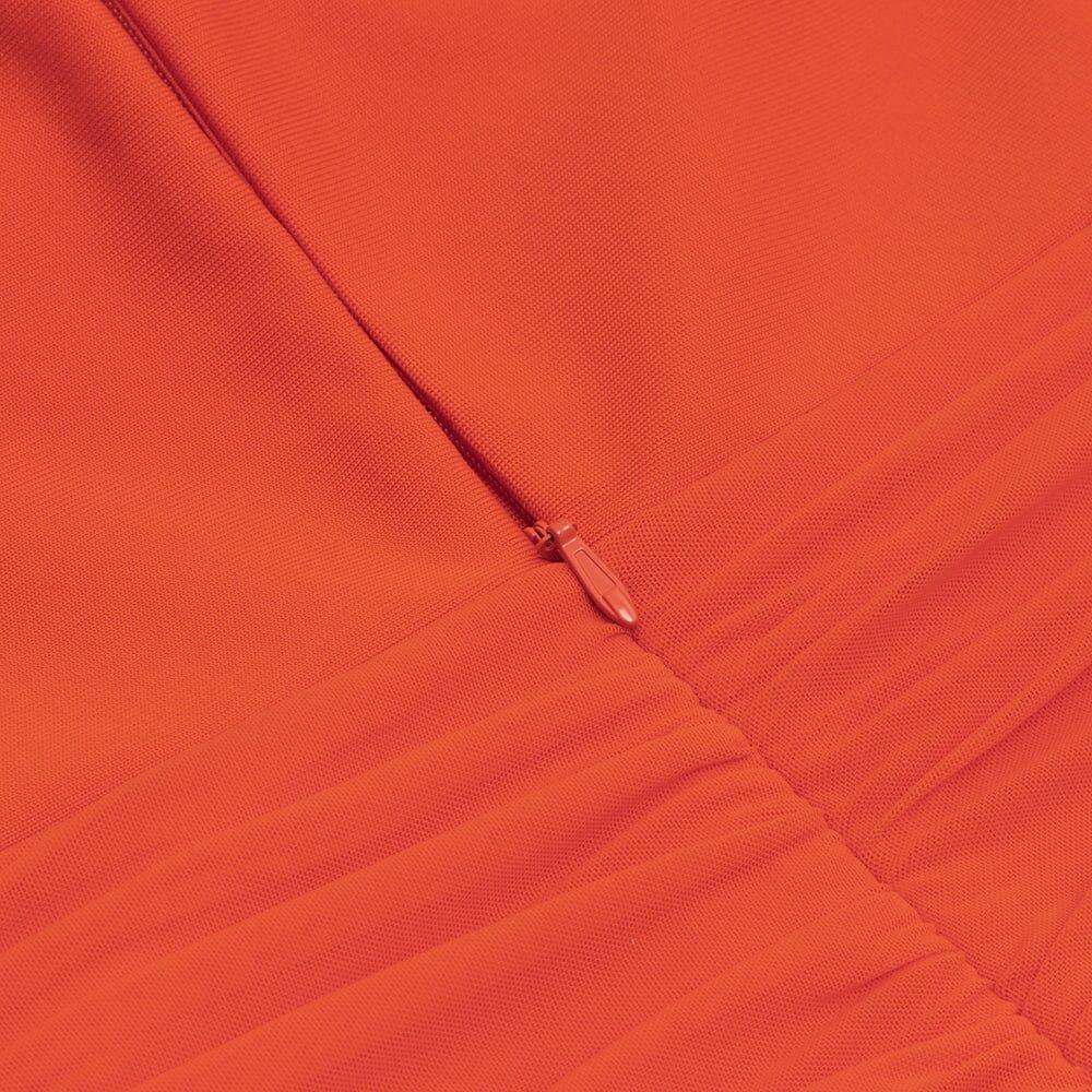 The unique mesh fabric and vibrant orange color of this dress add a touch of drama and flair, making it a true standout piece. Whether you're attending a summer event or a special occasion, this dress is guaranteed to turn heads and make you the center of attention.