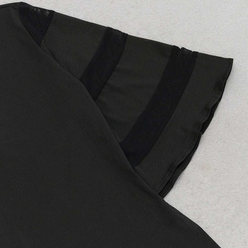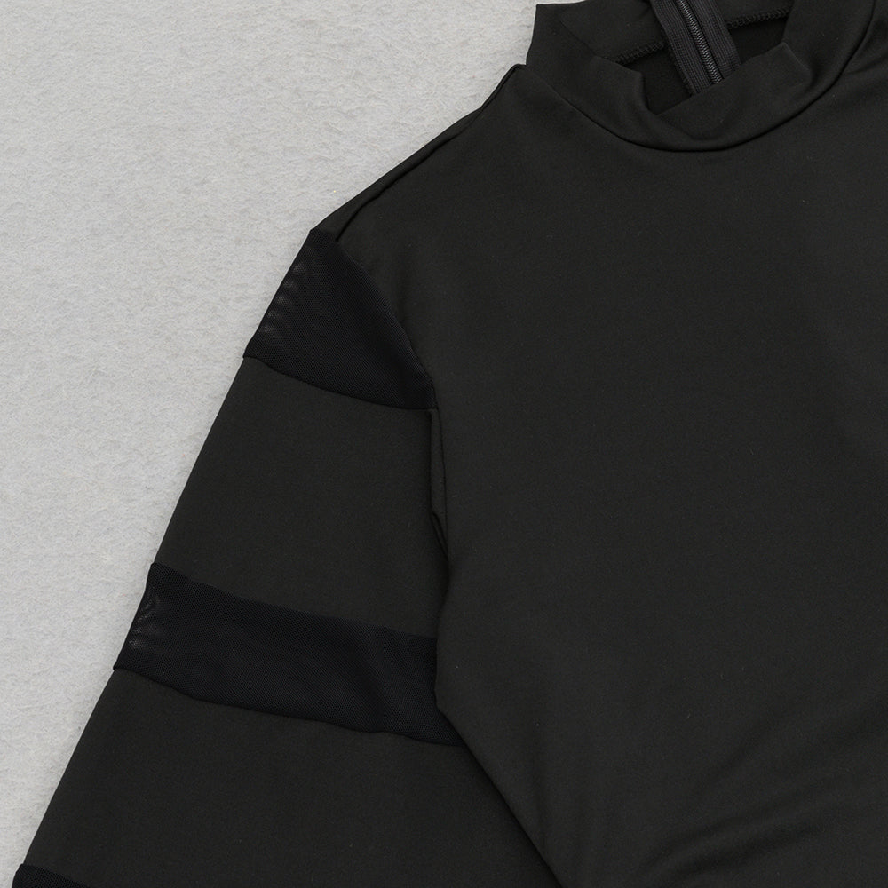 MESH SLEEVE SPLIT HEM FITTED DRESS