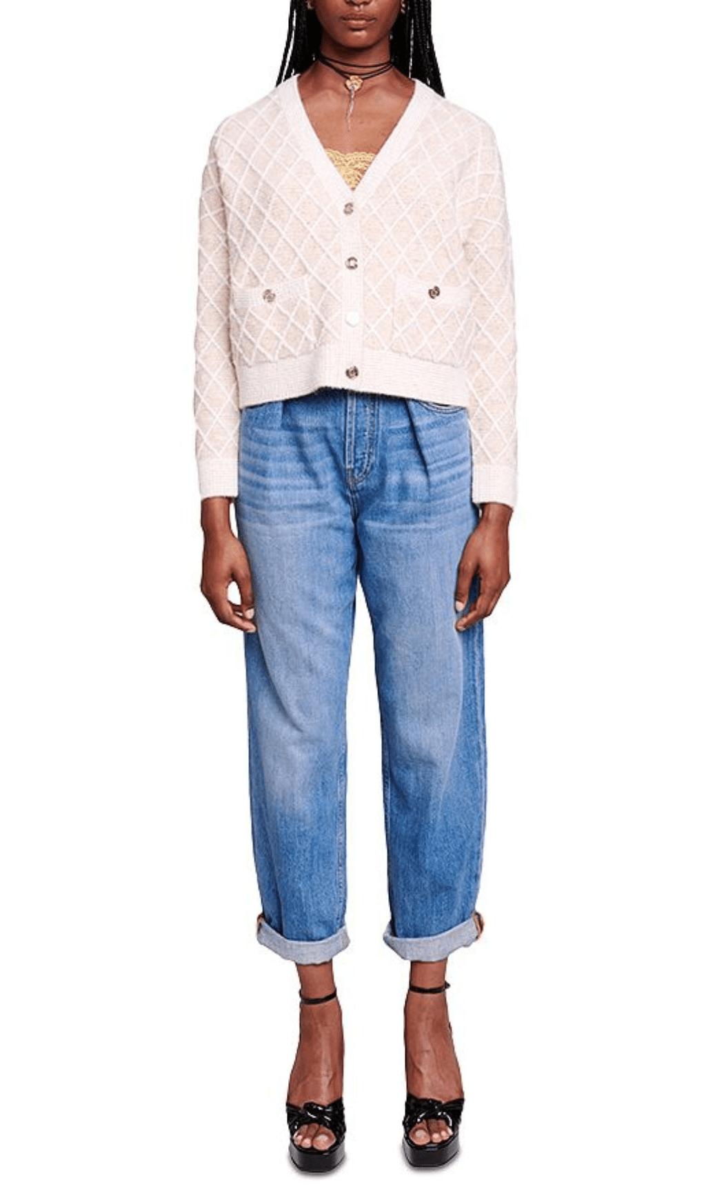 Made with shimmering metallic fibers, this sweater exudes confidence and makes a statement wherever you go. Perfect for those who aren't afraid to take risks and stand out in a crowd. Don't just blend in, shine brightly with our Metallic Cardigan Sweater!"