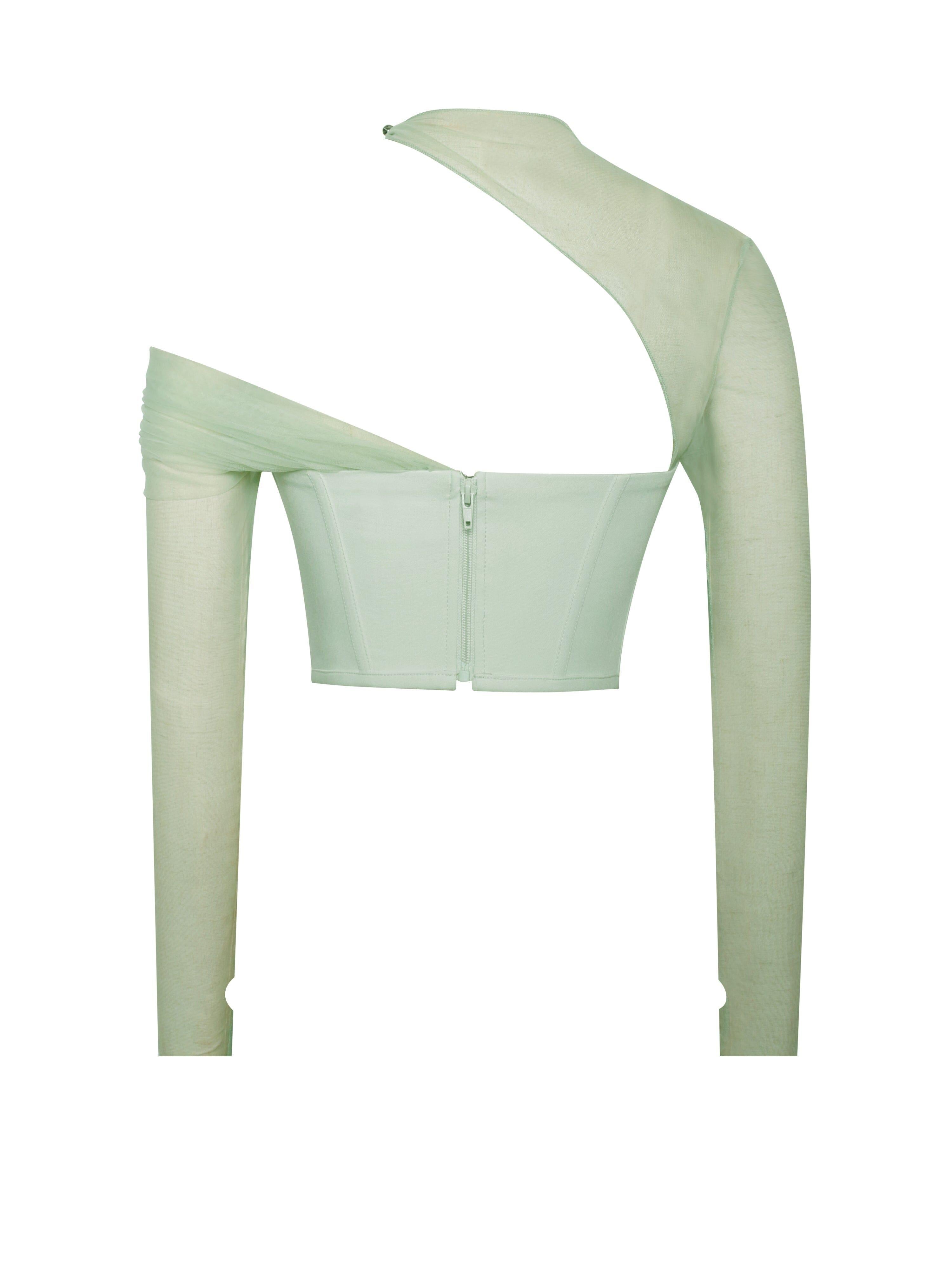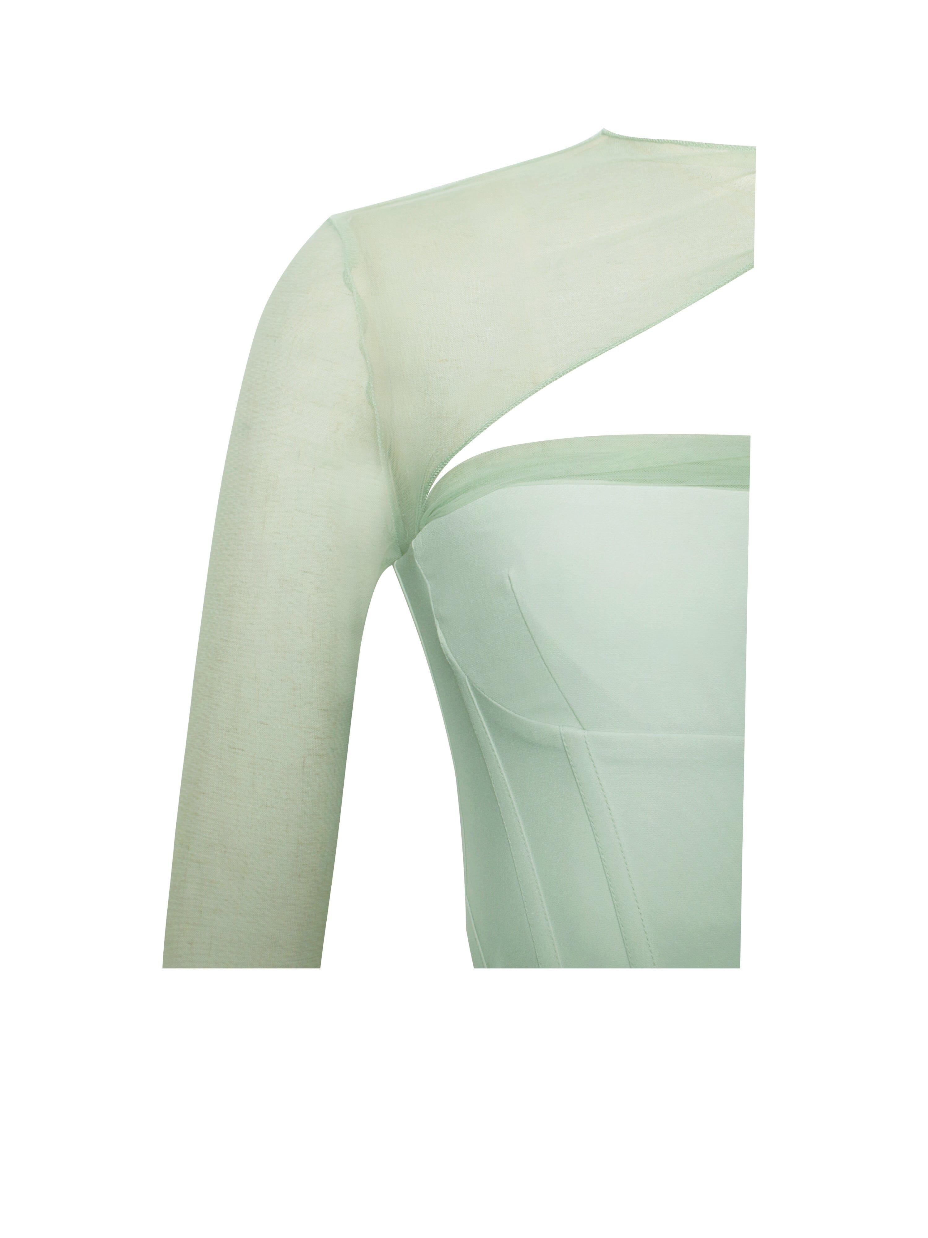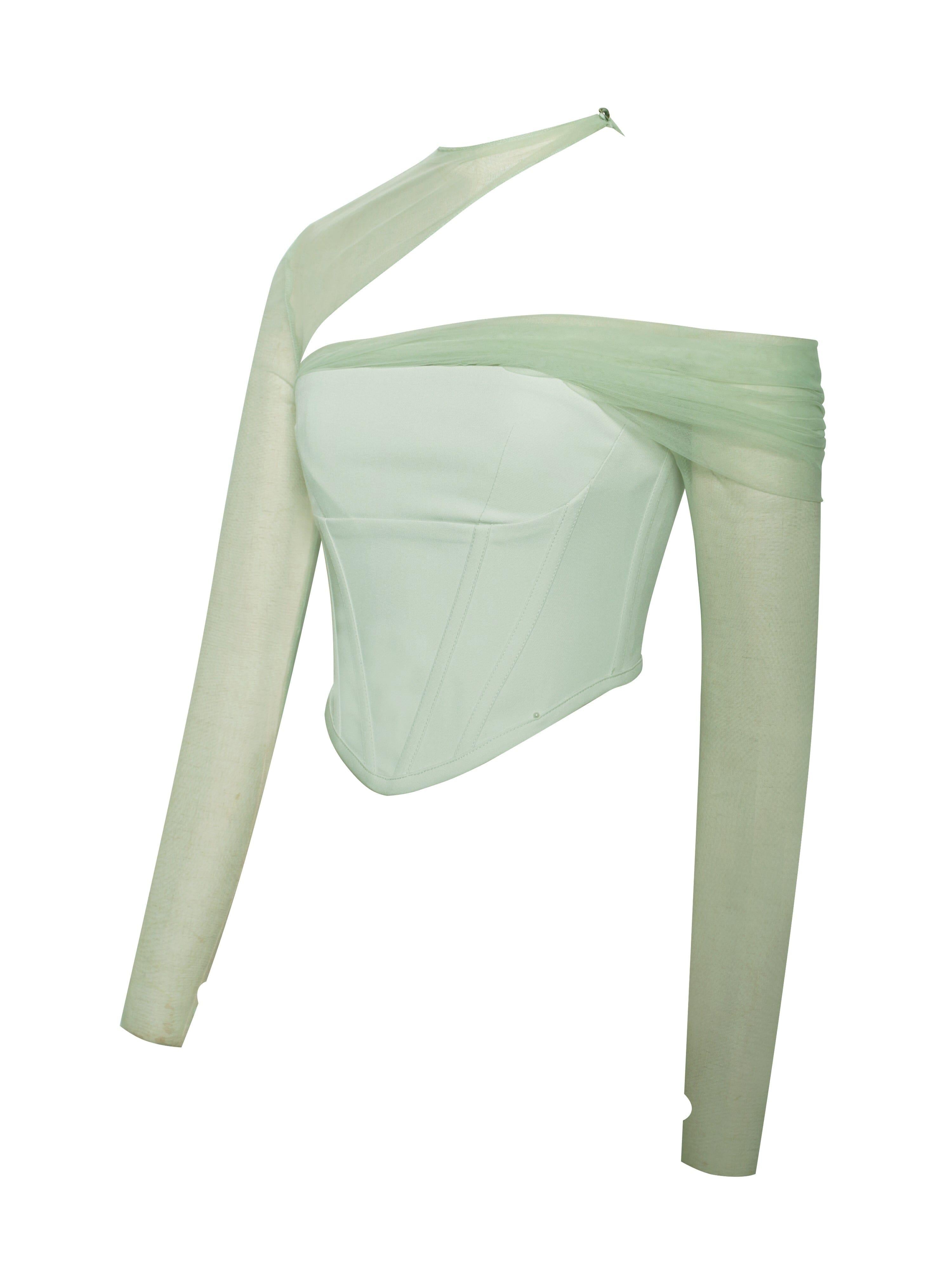 MIAH MINT STRETCH MESH SLEEVE CORSET TOP