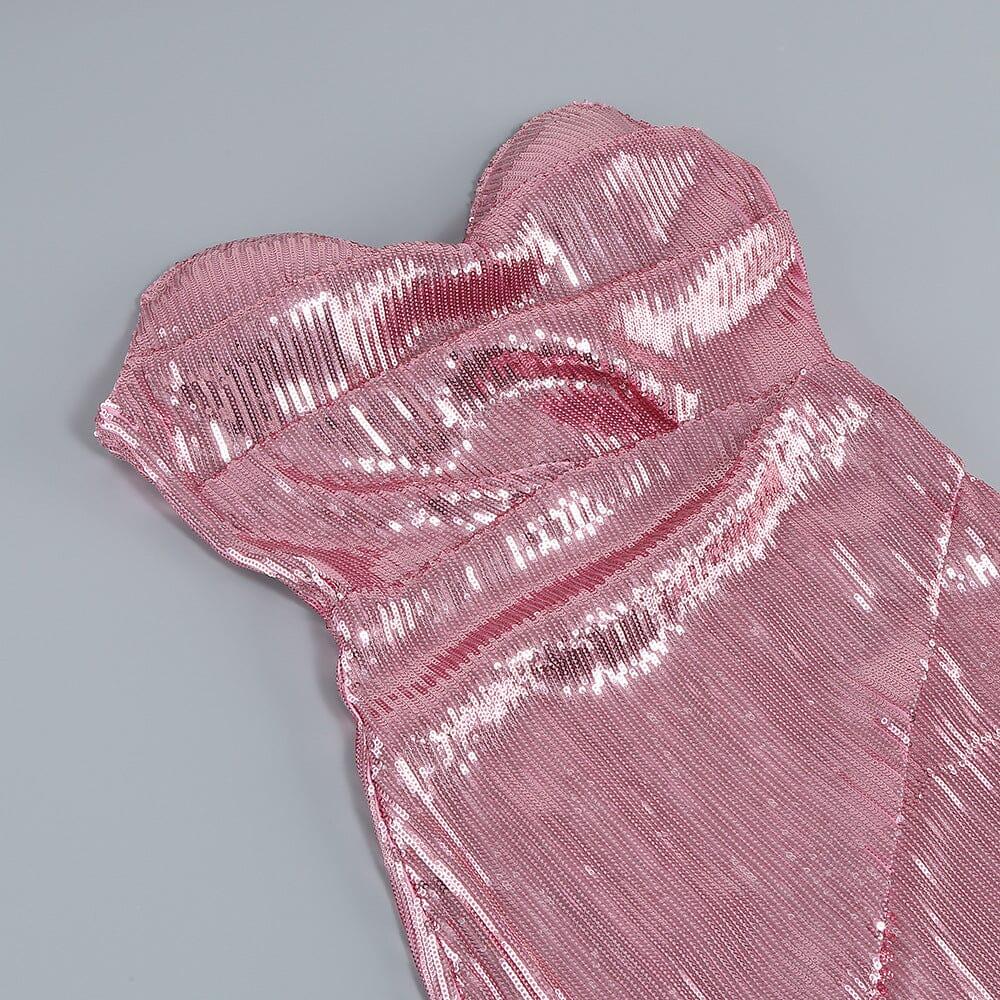 Make a stunning entrance in our Strapless Sequin Split Maxi Dress. This dress is designed to make you stand out in any room and is perfect for those special occasions when you want to make a lasting impression. The combination of sequins and a striking split creates a glamorous and eye-catching look.