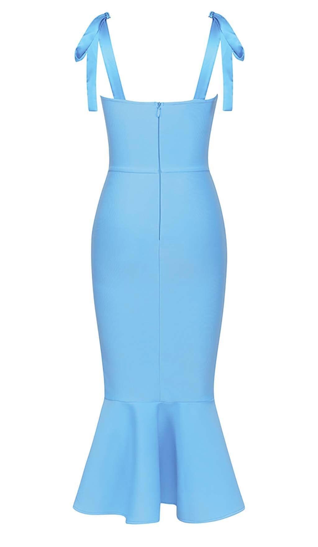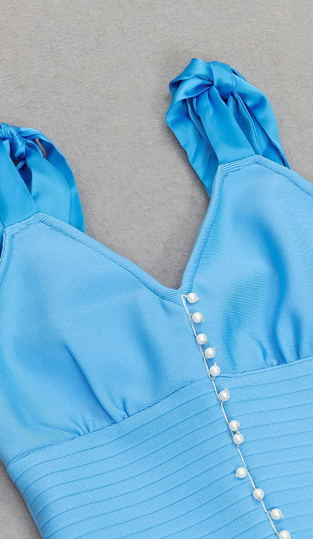 MICRO BUTTON MERMAID MIDI DRESS IN BRIGHT BLUE