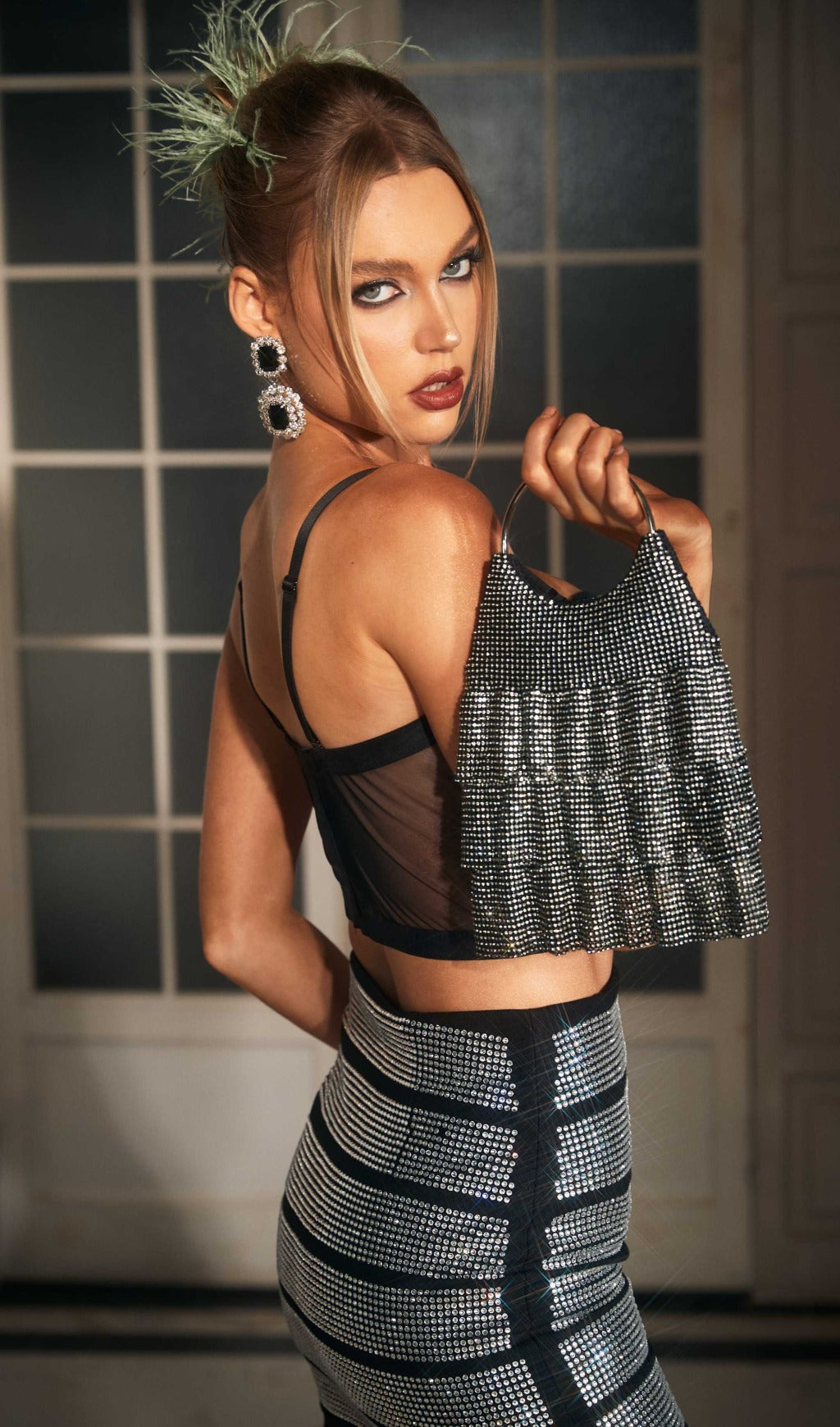 The Embellished Circle Bag is the perfect choice to make a statement. It features multi-layer ruched fabric that gives it a unique and stylish look, and it is embellished with crystals for added glamour. The metallic circle bag adds a chic finishing touch, making this the perfect bag for any fashionista.