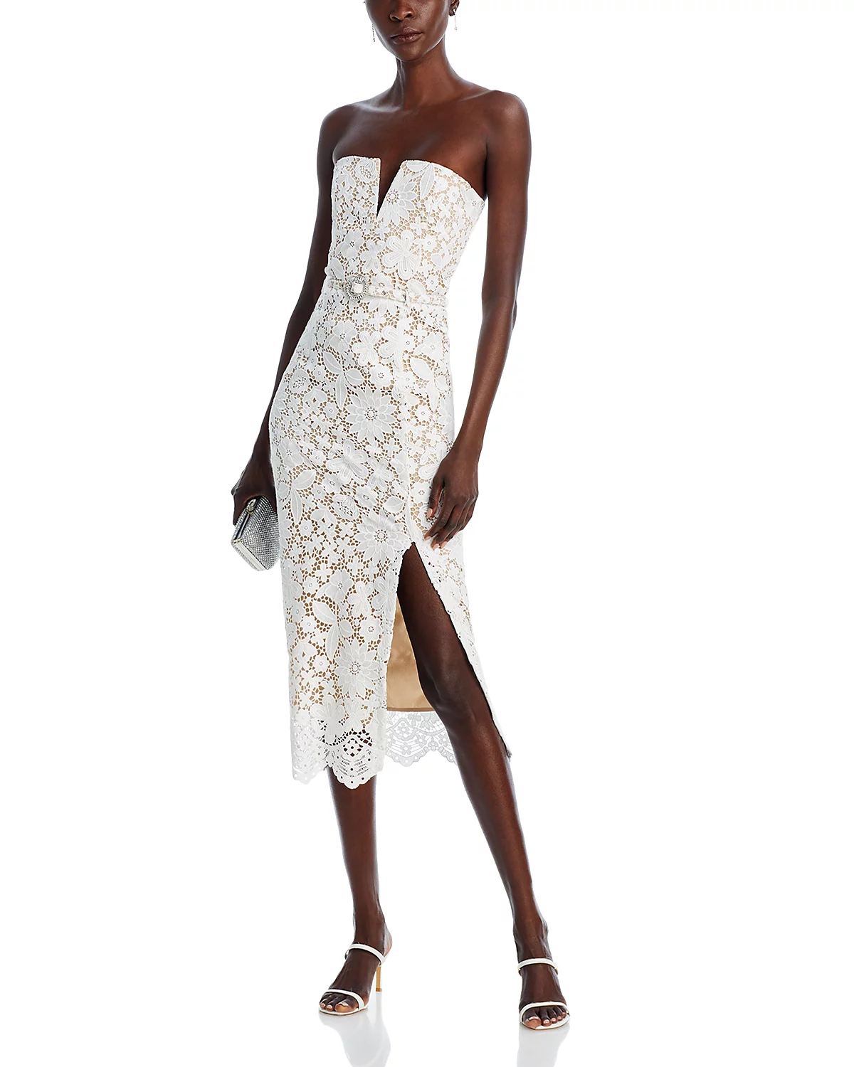 Milette v-neck Lace midi Dress in white