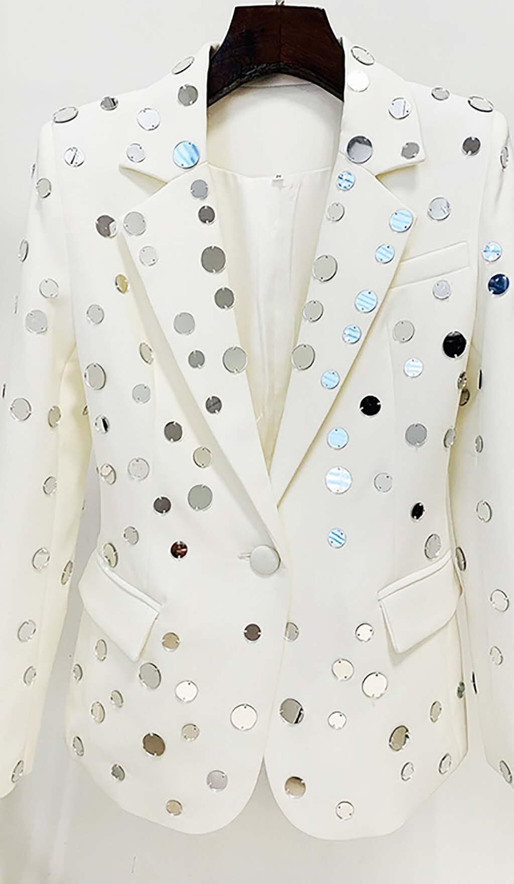 MIRROR SEQUIN DETAIL JACKET IN WHITE