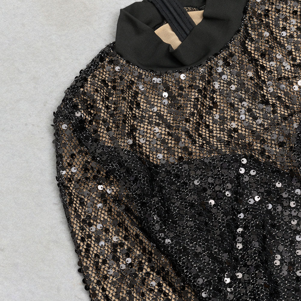MOCK NECK SEQUIN BODYCON DRESS
